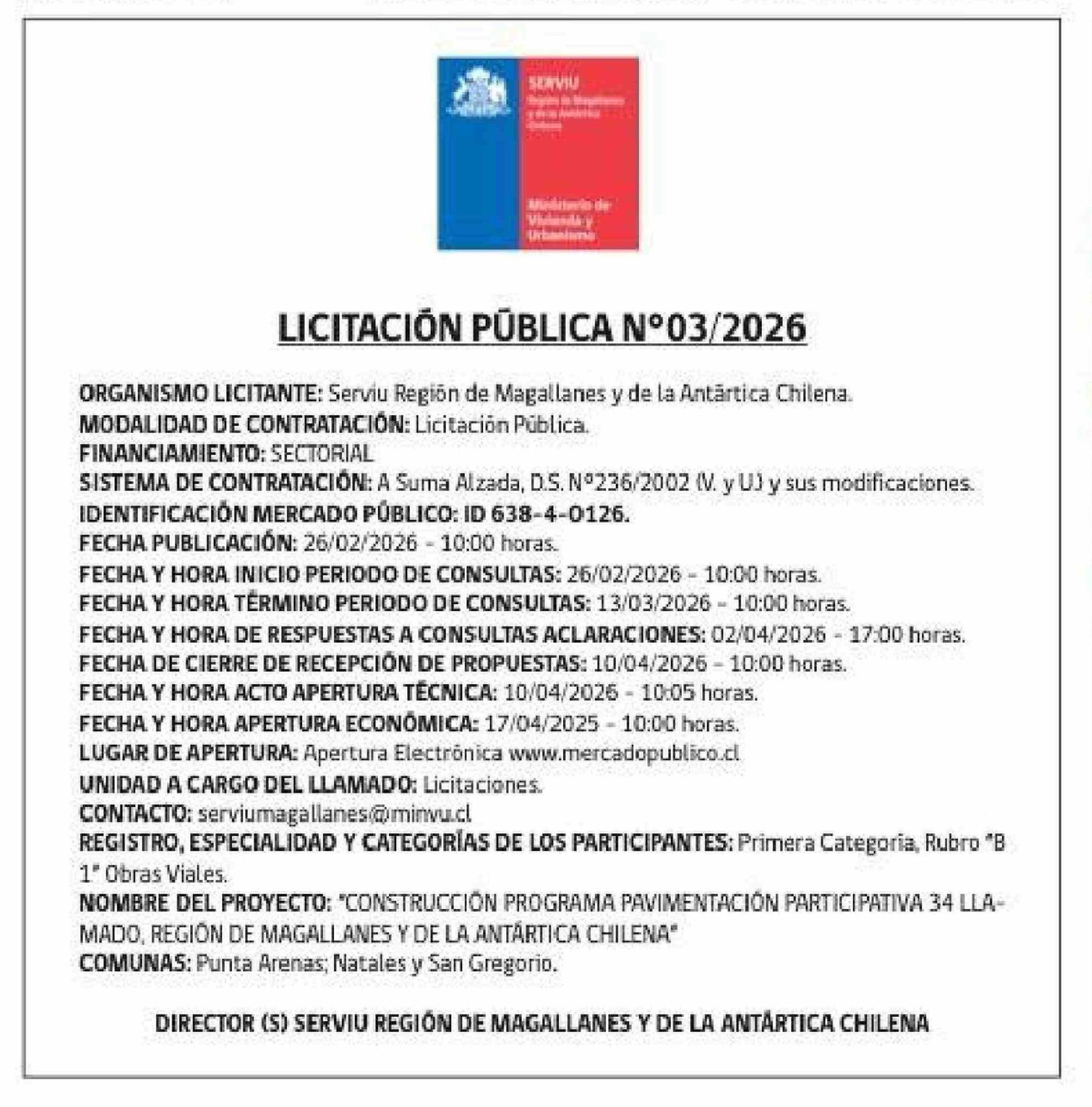 Fecha: 26-02-2026 Sector: Noticia general Región: Región de Magallanes y de la Antártica Chilena