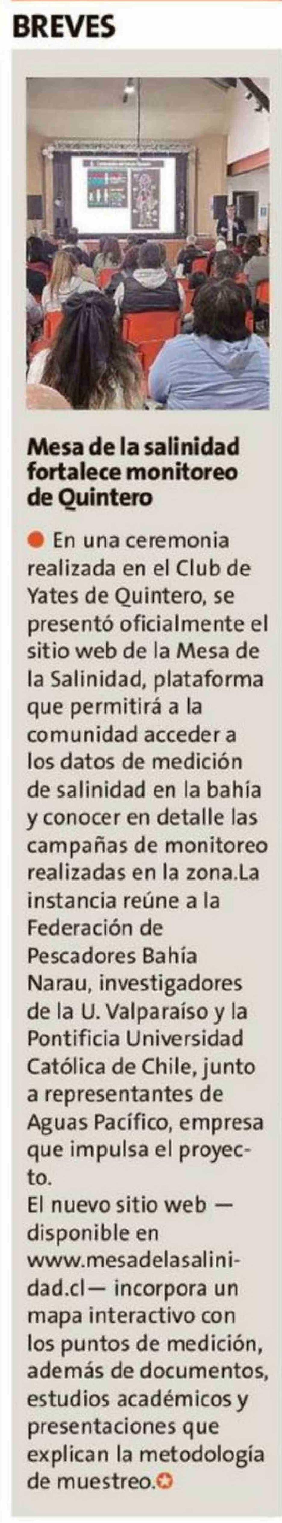 Mesa de la salinidad fortalece monitoreo de Quintero 02-02-2026 La Estrella de Valparaíso |