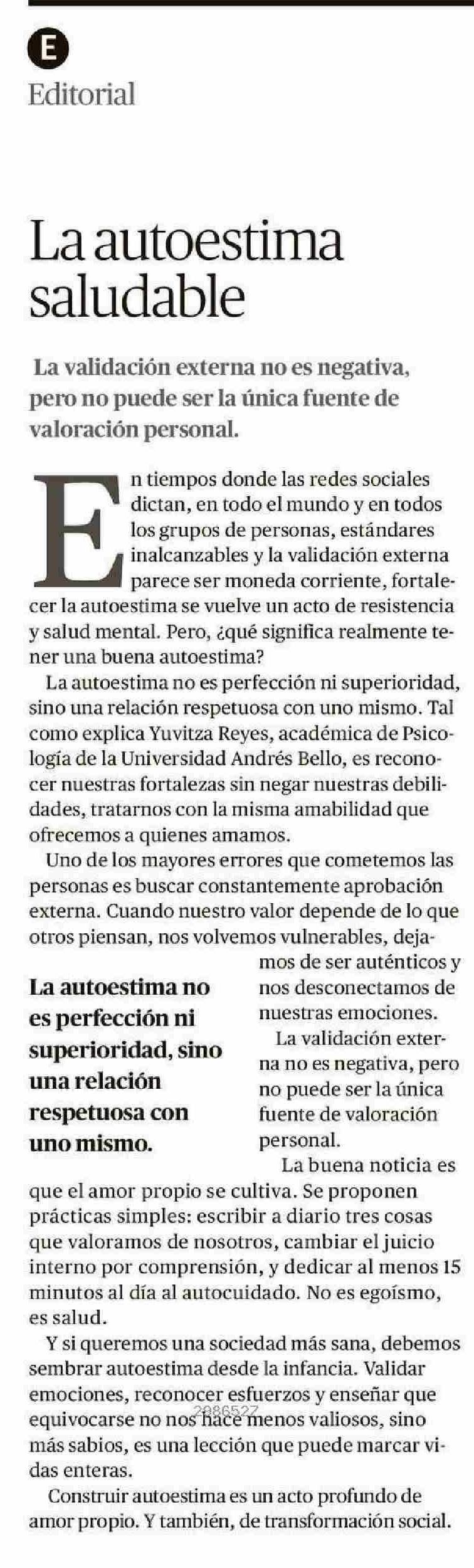 Editorial: La autoestima saludable 23-06-2025 Crónica de Chillán |