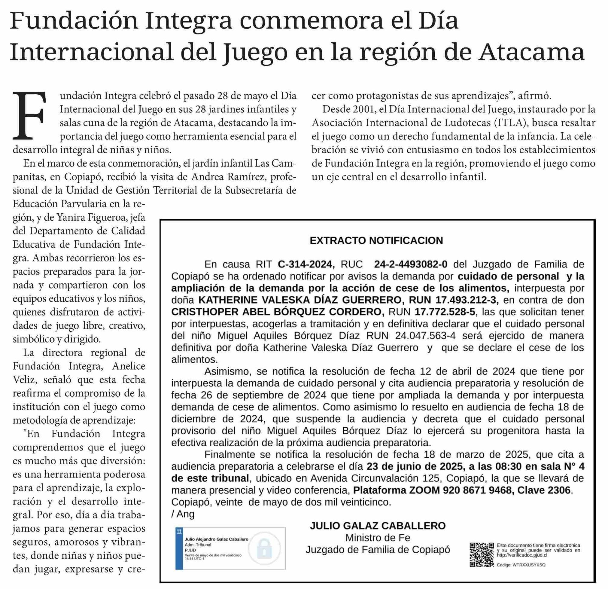 Fecha: 30-05-2025 Sector: Noticia general Región: Región de Atacama