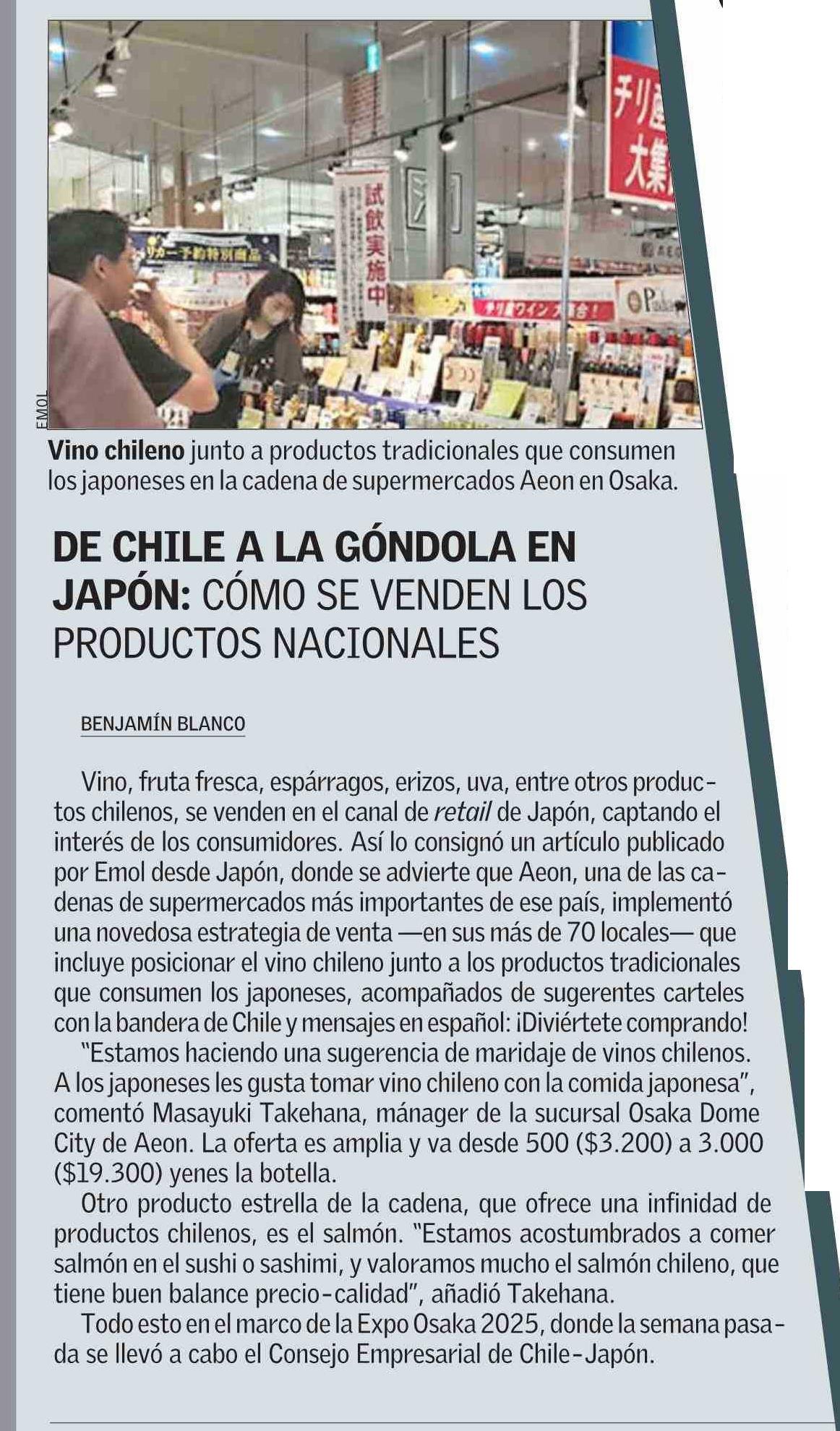 DE CHILE A LA GÓNDOLA EN JAPÓN: CÓMO SE VENDEN LOS PRODUCTOS NACIONALES 19-05-2025 El Mercurio |