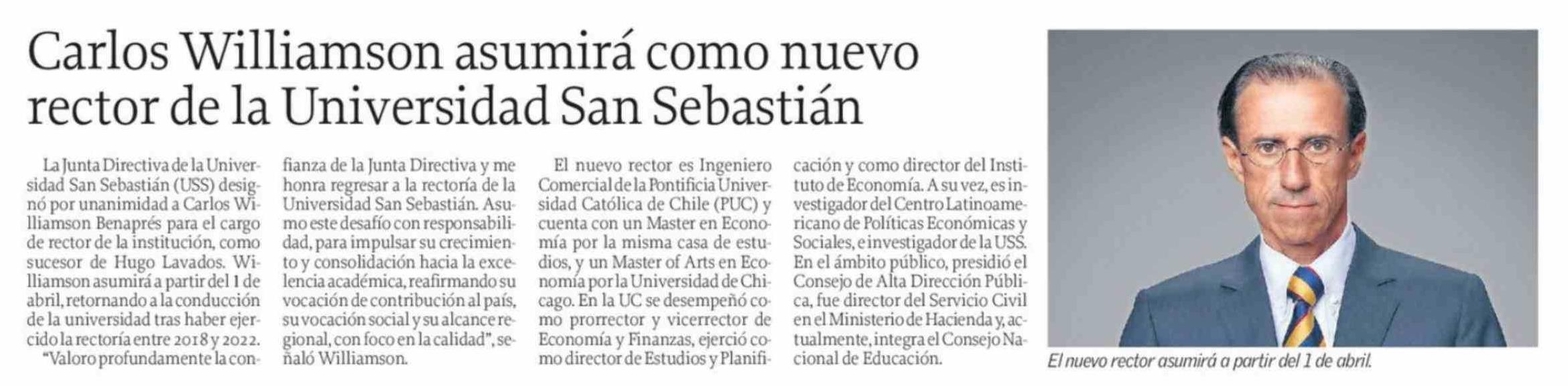 Título: Carlos Williamson asumirá como nuevo rector de la Universidad San Sebastián