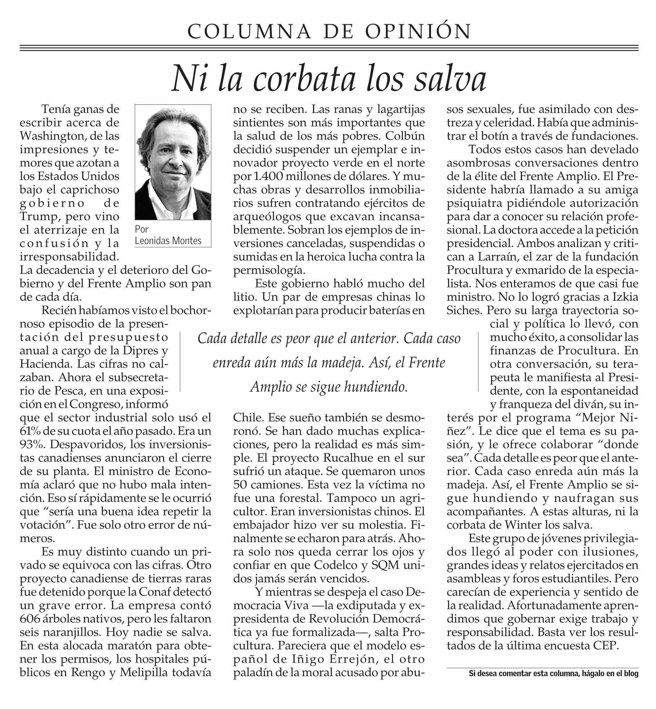 COLUMNAS DE OPINIÓN: Ni la corbata los salva 15-05-2025 El Mercurio |