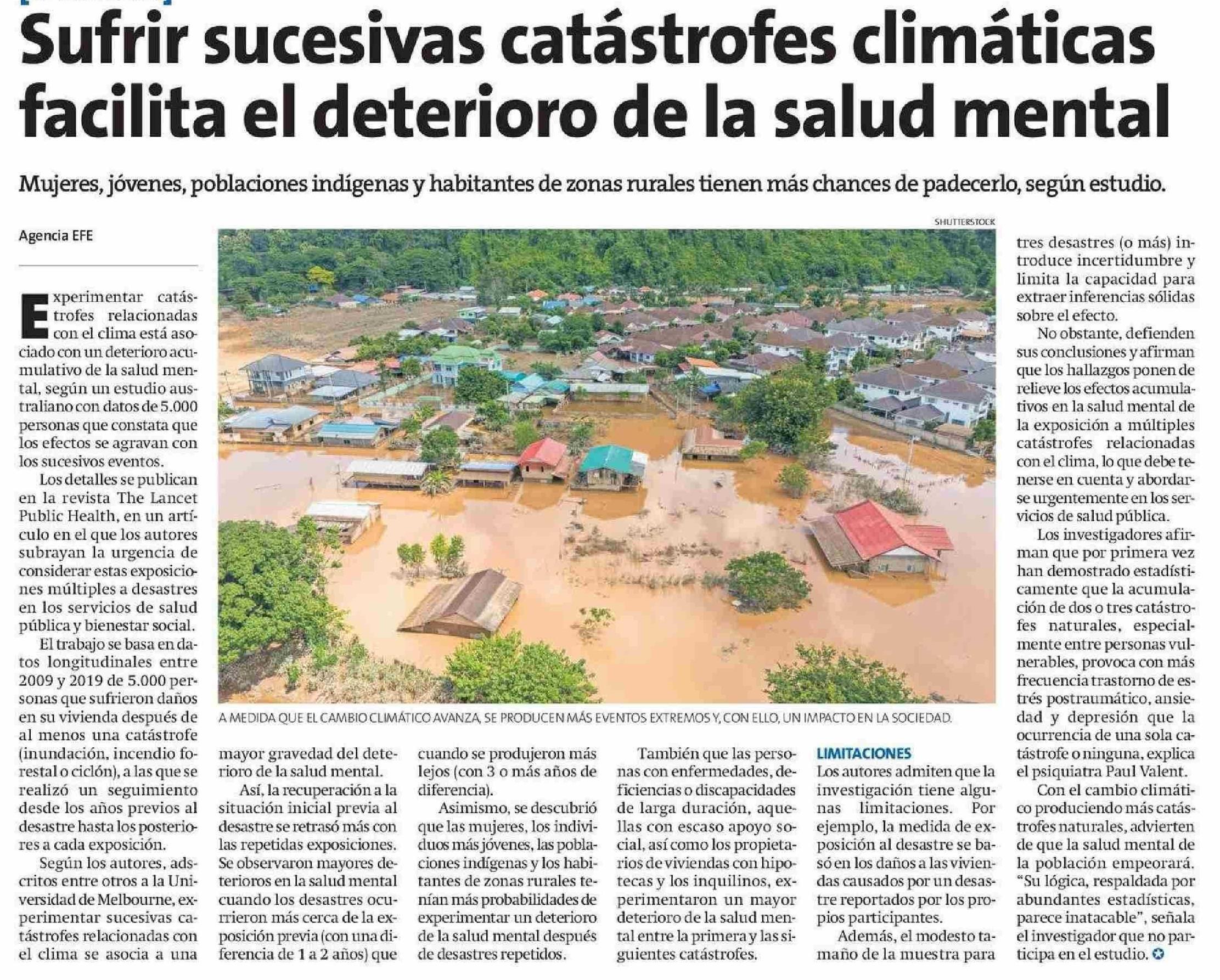 Sufrir sucesivas catástrofes climáticas facilita el deterioro de la salud mental 02-05-2025 La Estrella de Antofagasta |