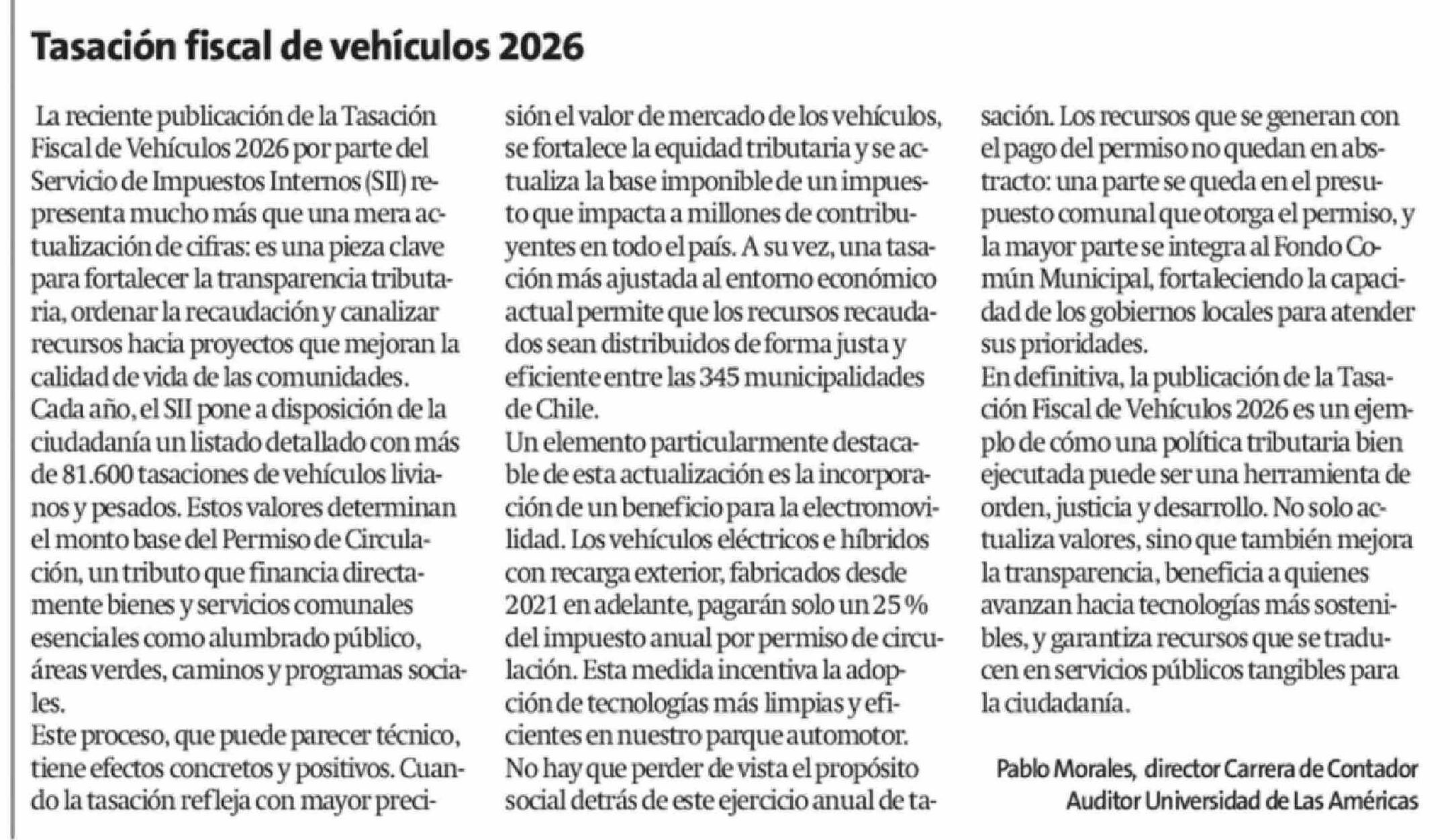 Columnas de Opinión: Tasación fiscal de vehículos 2026 21-02-2026 La Estrella de Arica |