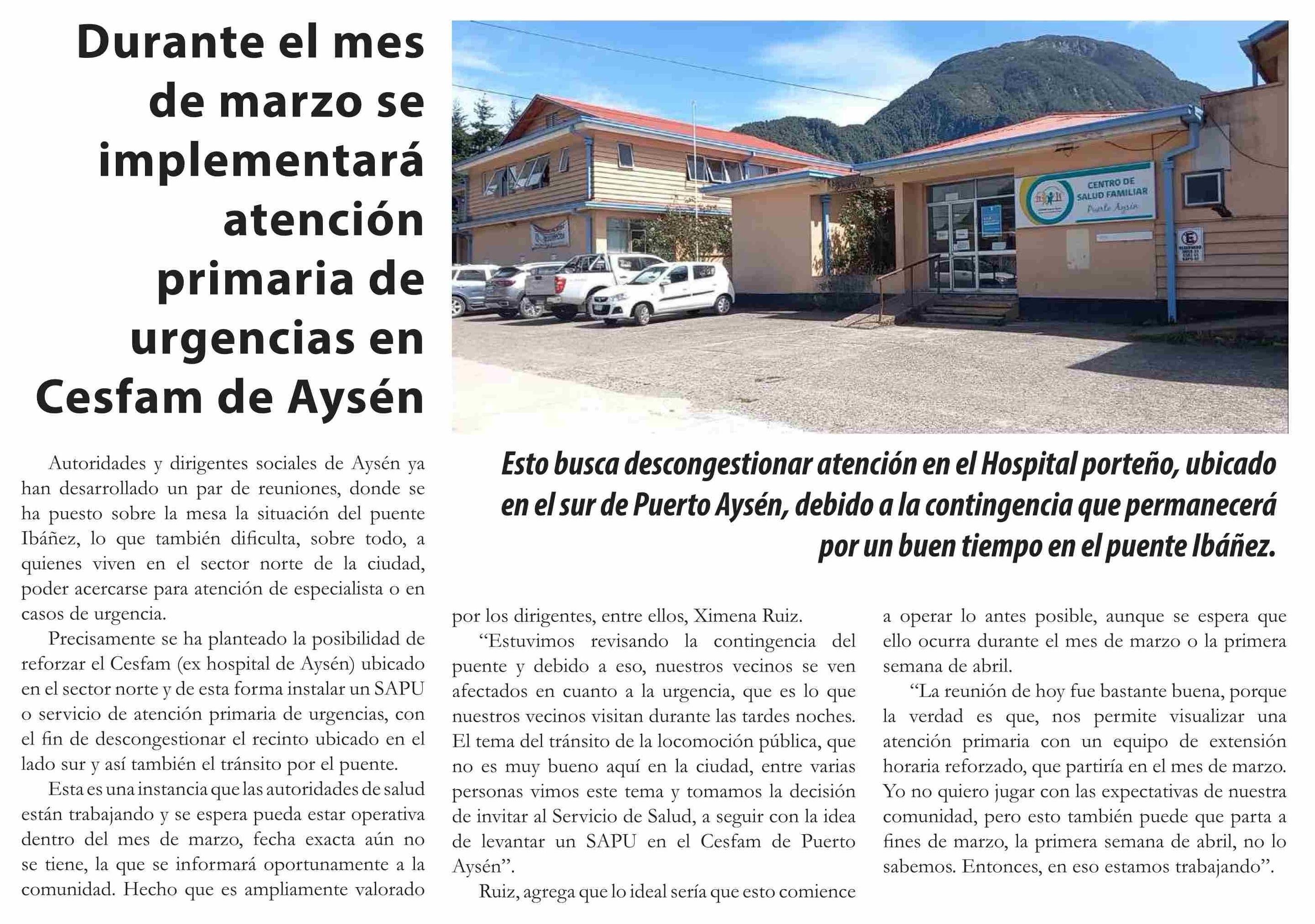 | Título: | Durante el mes de marzo se implementará atención primaria de urgencias en Cesfam de Aysén |