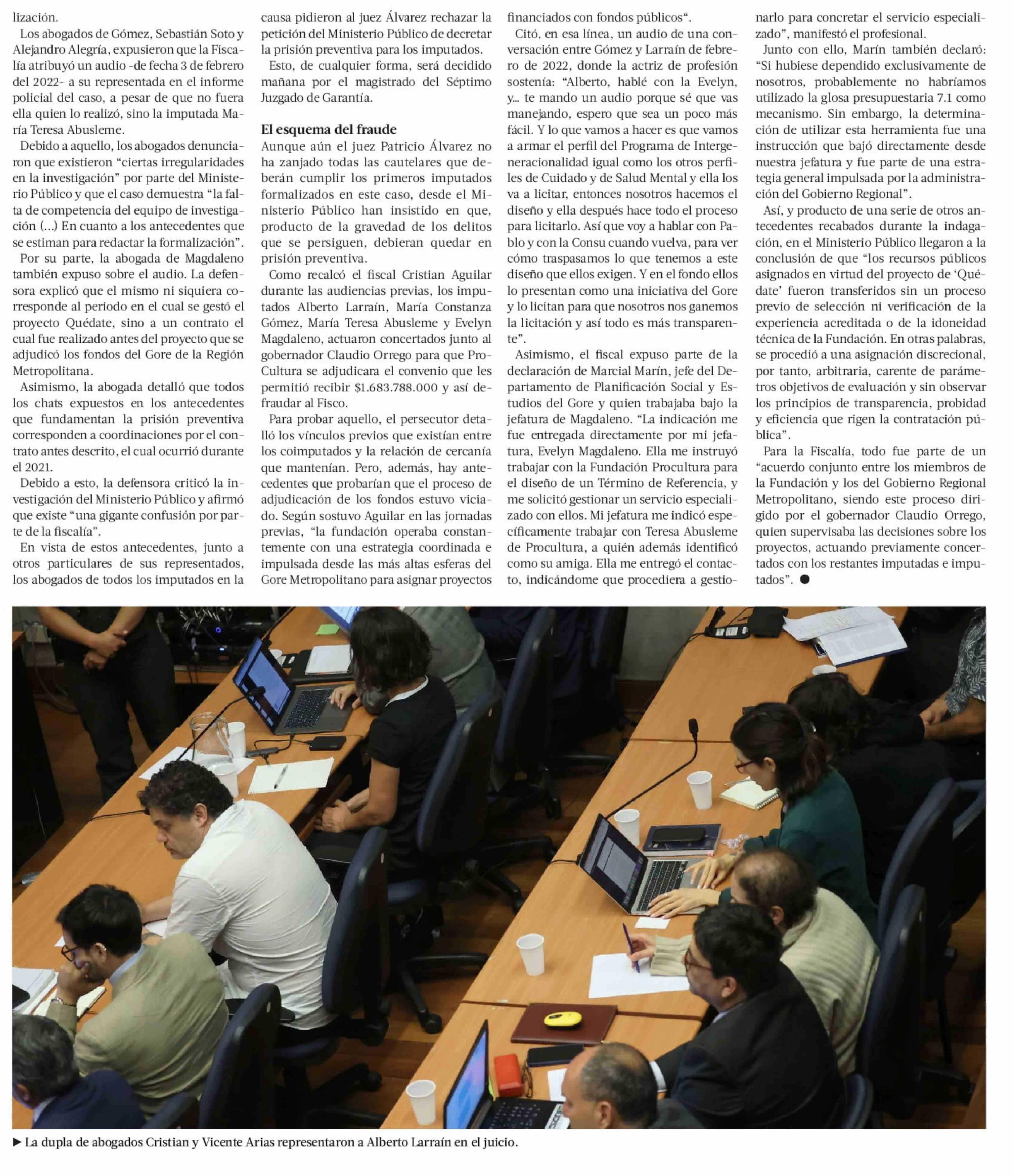 ProCultura: Larraín y compañía desestiman imputaciones de la Fiscalía y califican de desproporcionada la prisión preventiva 04-02-2026 La Tercera |