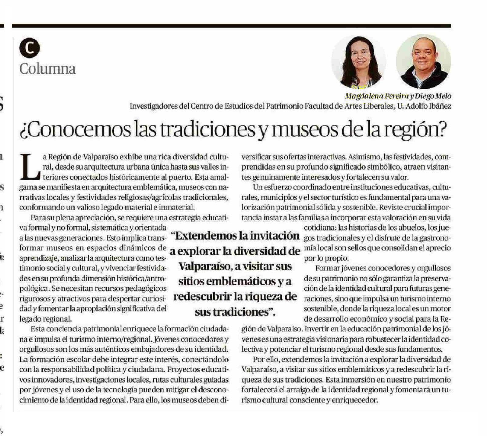 COLUMNAS DE OPINIÓN: ¿Conocemos las tradiciones y museos de la región? 25-05-2025 El Mercurio de Valparaíso |