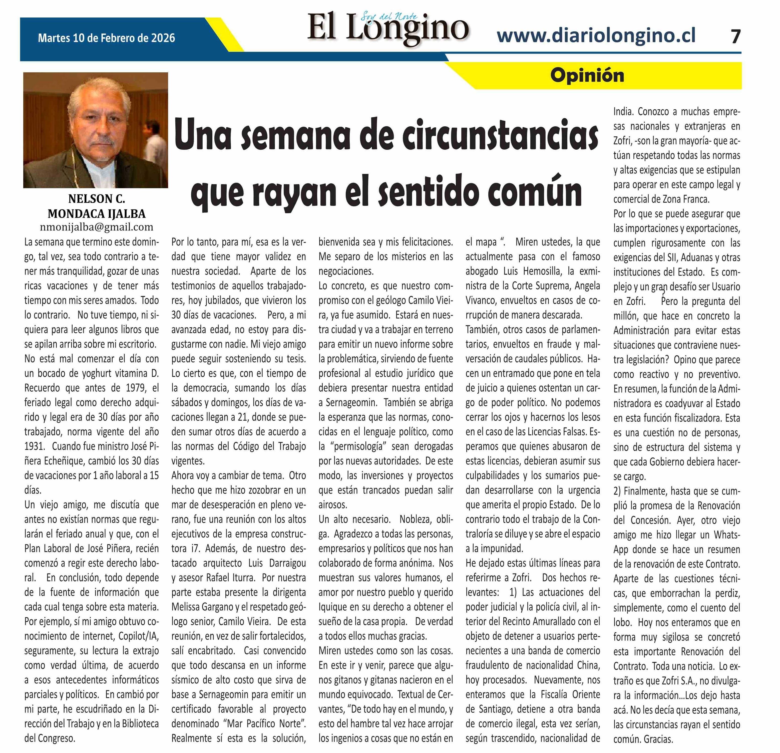 Fecha: 10-02-2026 Sector: Columnas de Opinión Región: Región de Tarapacá