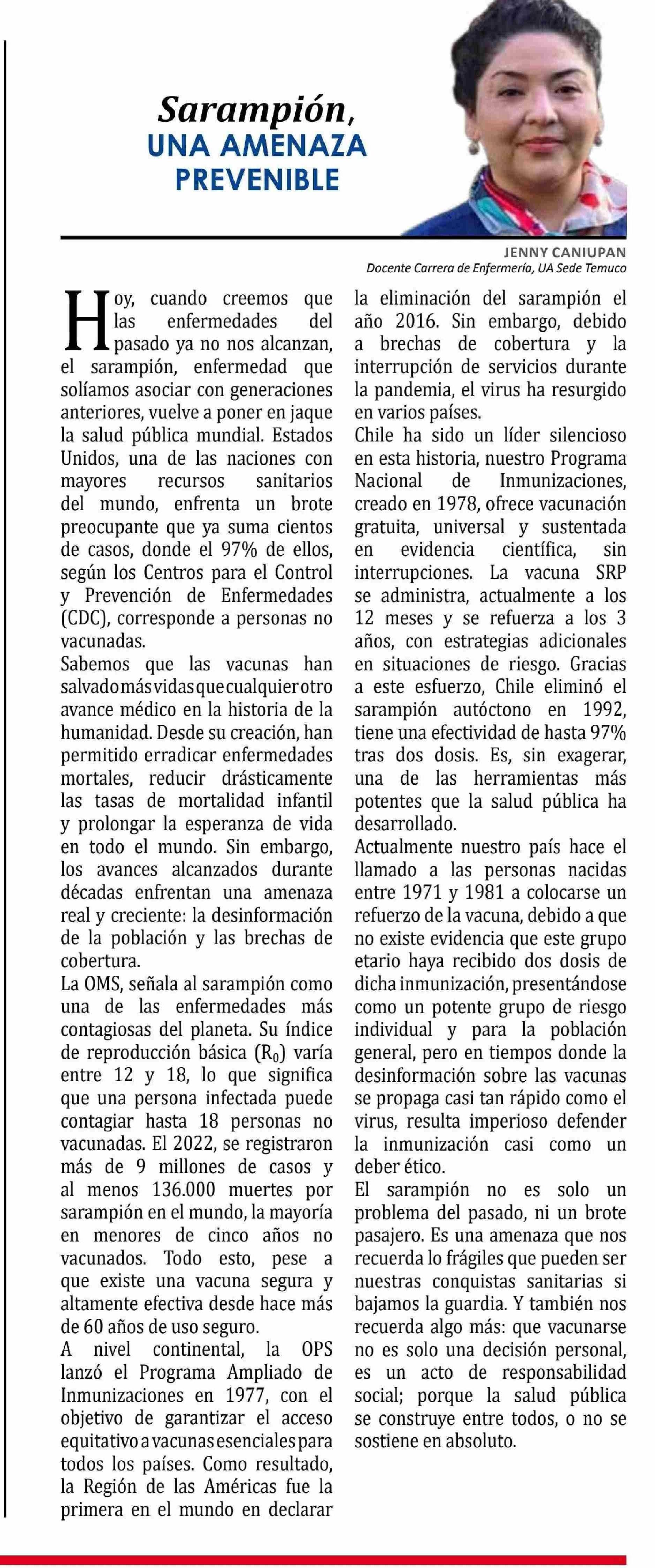 | Fecha: | 07-06-2025 | Sector: | Columnas de Opinión | Región: | Región de la Araucanía |