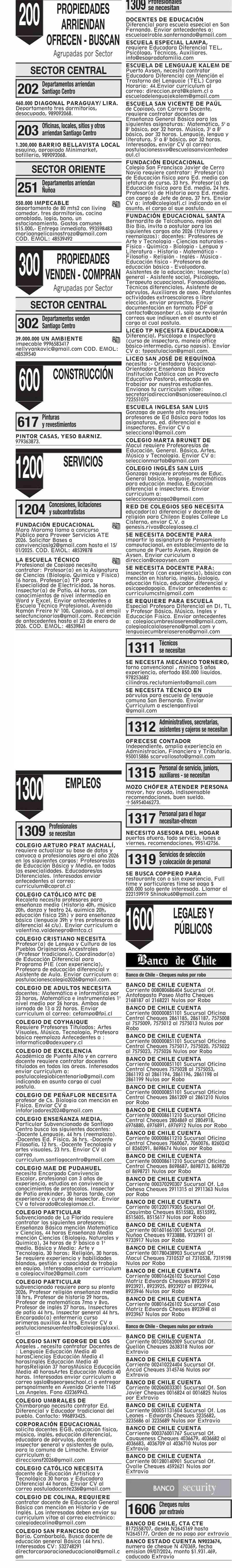 AVISO LICITACIONES: PROFESIONALES EN EDUCACIÓN SE NECESITAN 07-01-2026 El Mercurio |