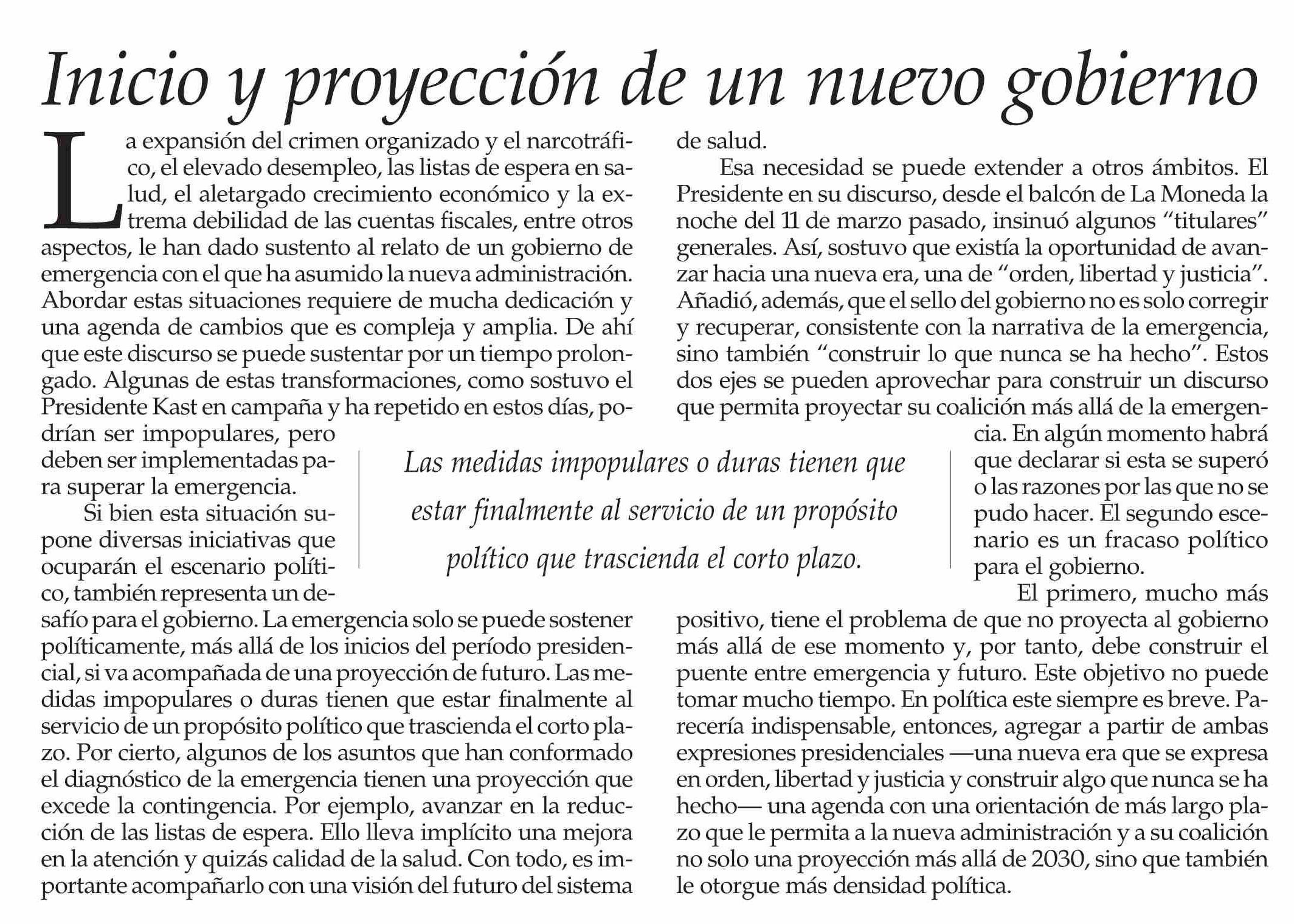 Título: EDITORIAL: Inicio y proyección de un nuevo gobierno