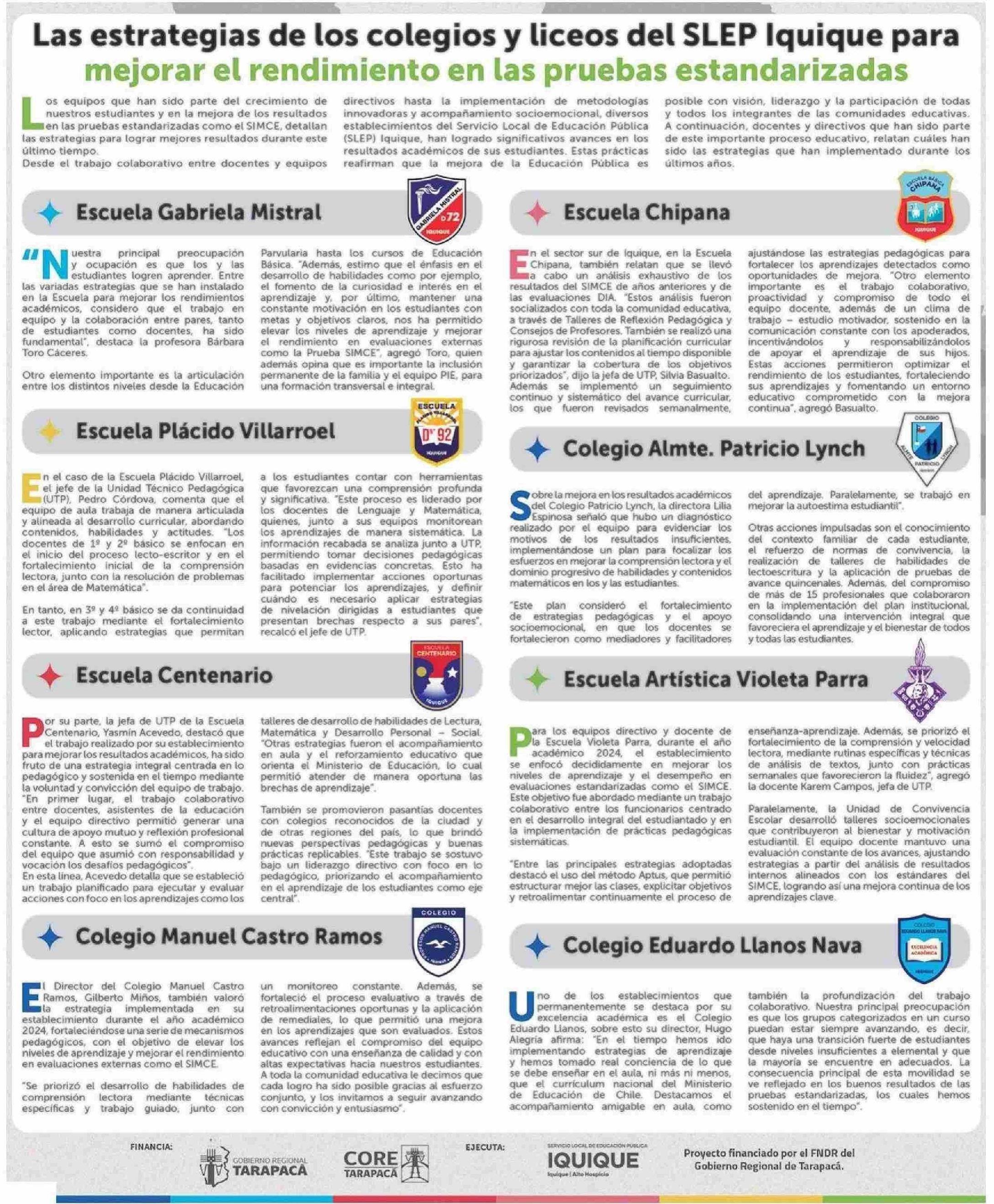 Las estrategias de los colegios y liceos del SLEP Iquique para mejorar el rendimiento en las pruebas estandarizadas