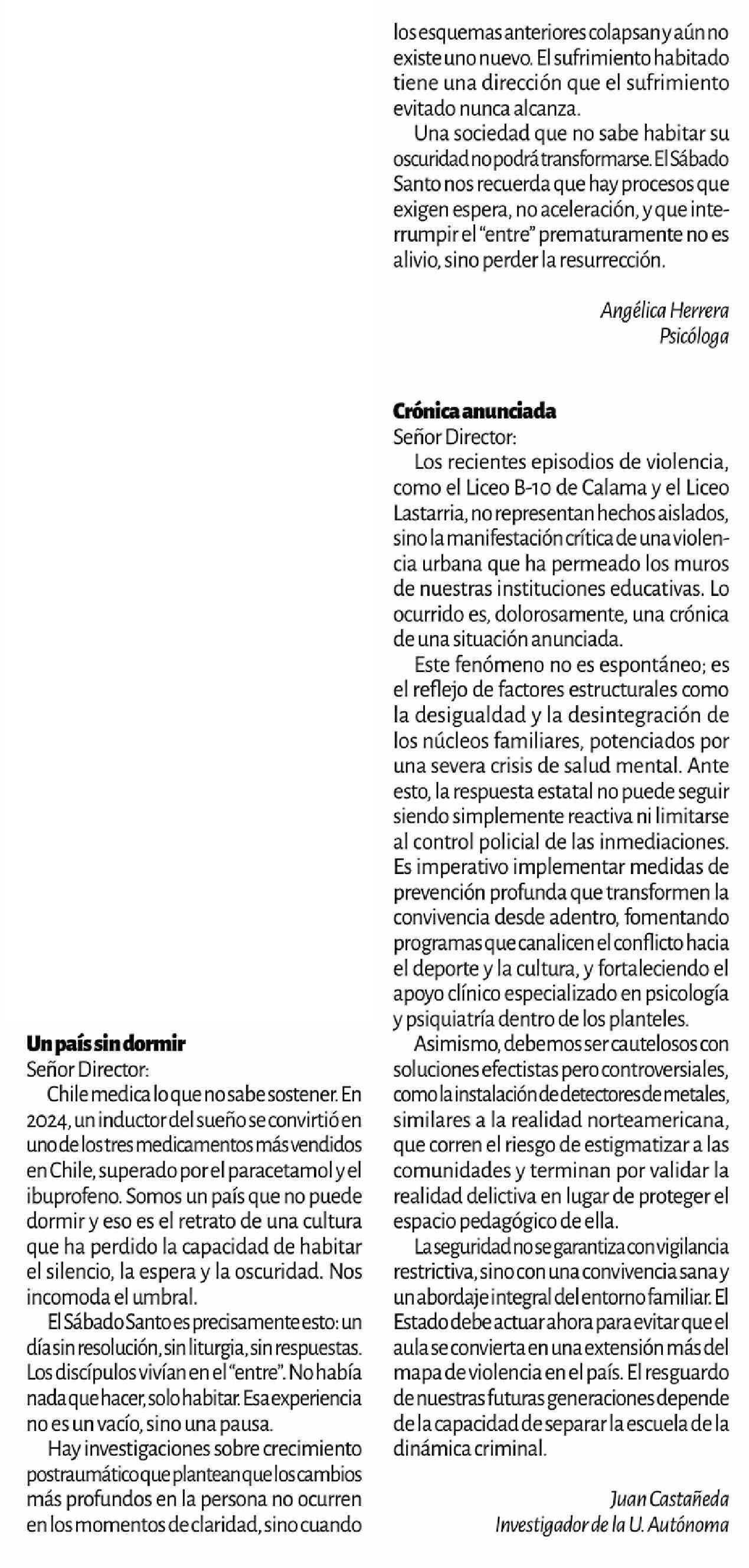 CARTAS: Un país sin dormir 05-04-2026 La Discusión |