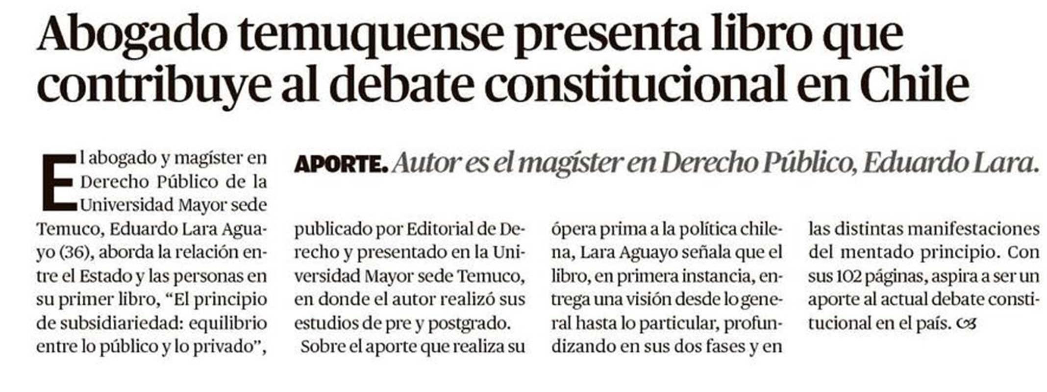 Abogado temuquense presenta libro que contribuye al debate constitucional en Chile 08-11-2022 El Austral de la Araucanía |