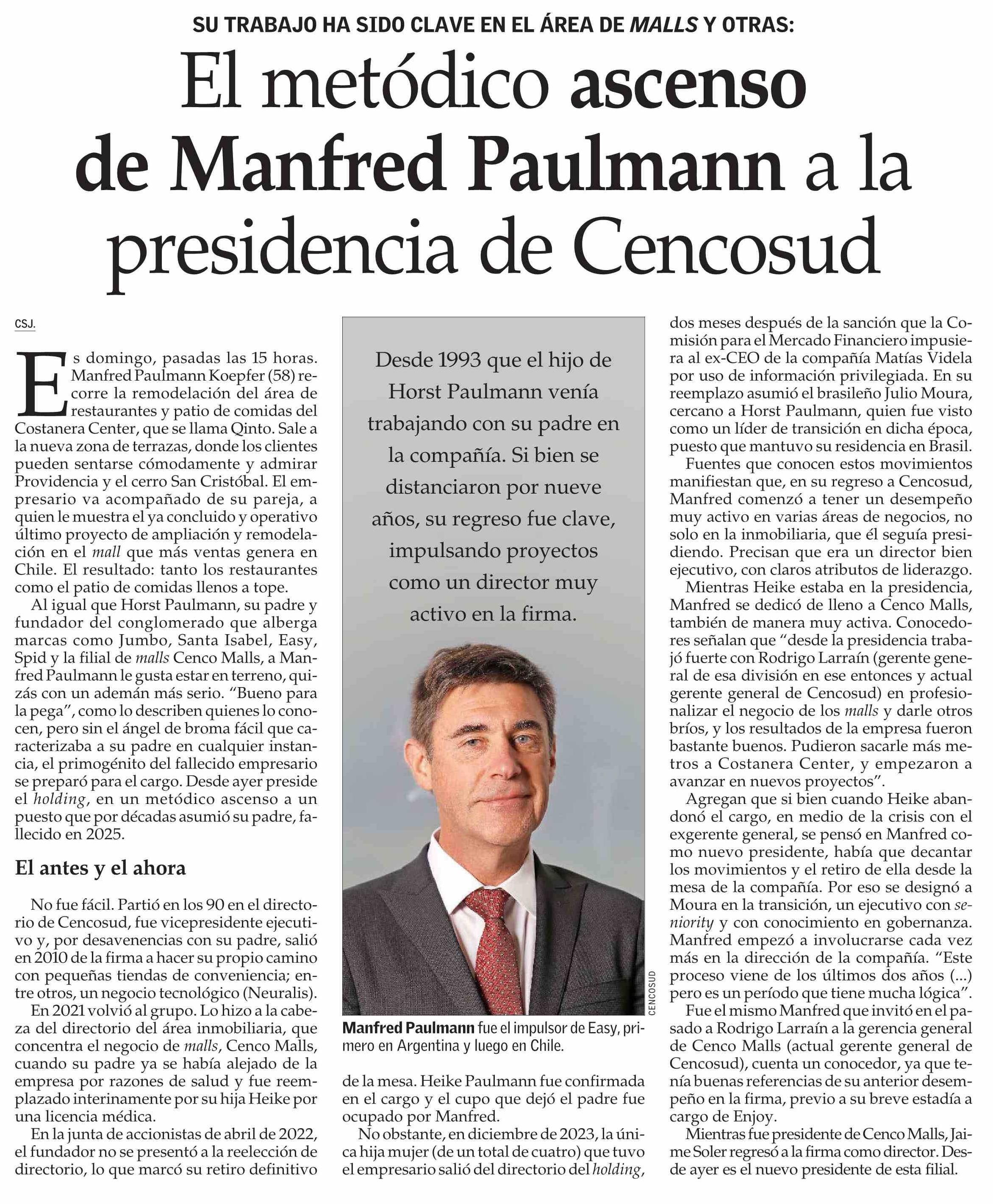 Título: El metódico ascenso de Manfred Paulmann a la presidencia de Cencosud