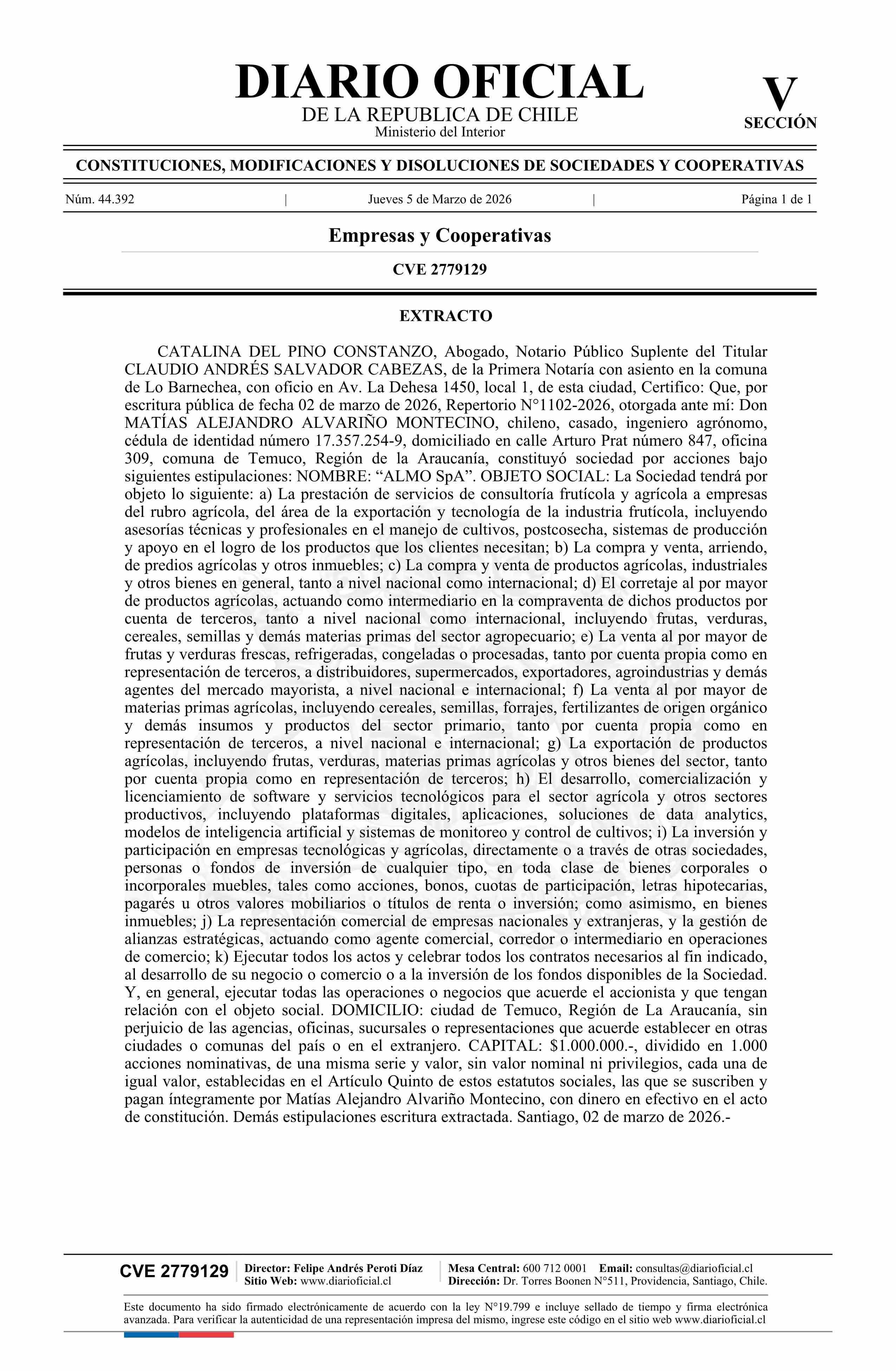 Almo SpA 05-03-2026 Diario Oficial Edición Electrónica |