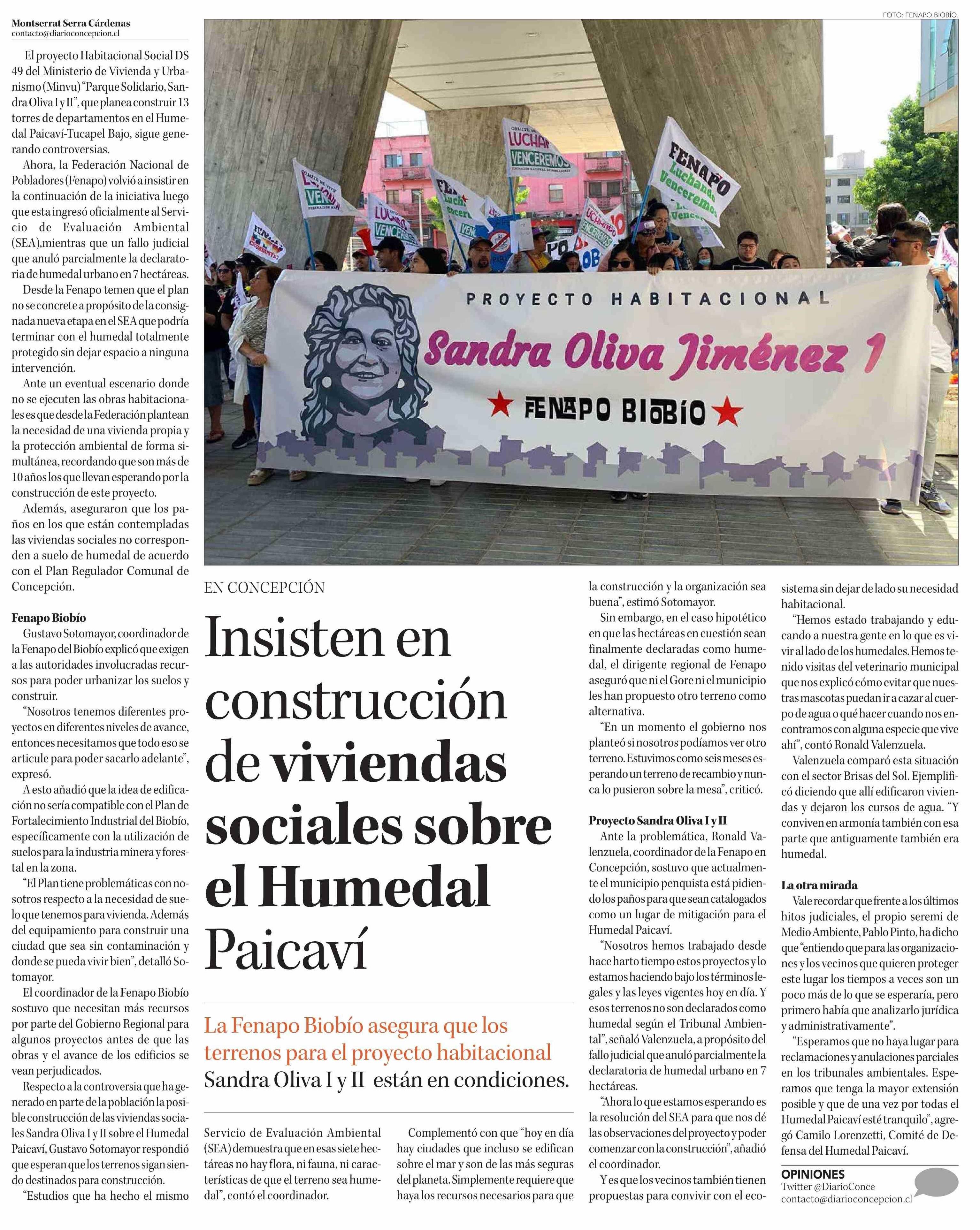 Insisten en construcción de viviendas sociales sobre el Humedal Paicaví 07-01-2025 Diario Concepción |