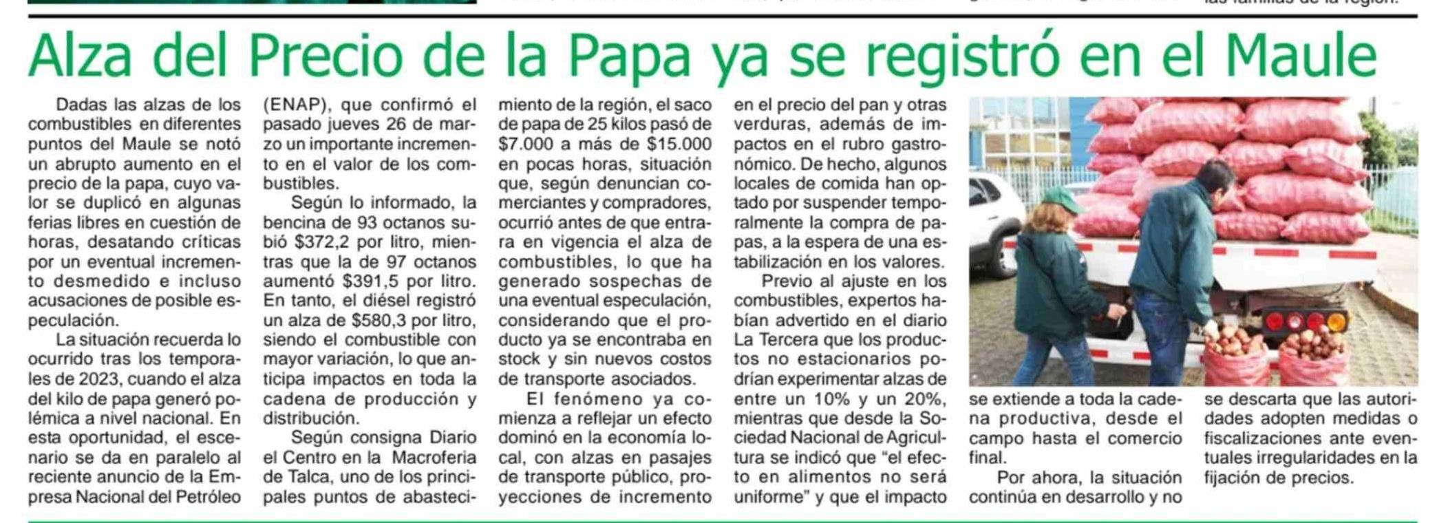 Alza del Precio de la Papa ya se registró en el Maule 01-04-2026 Maule Hoy |