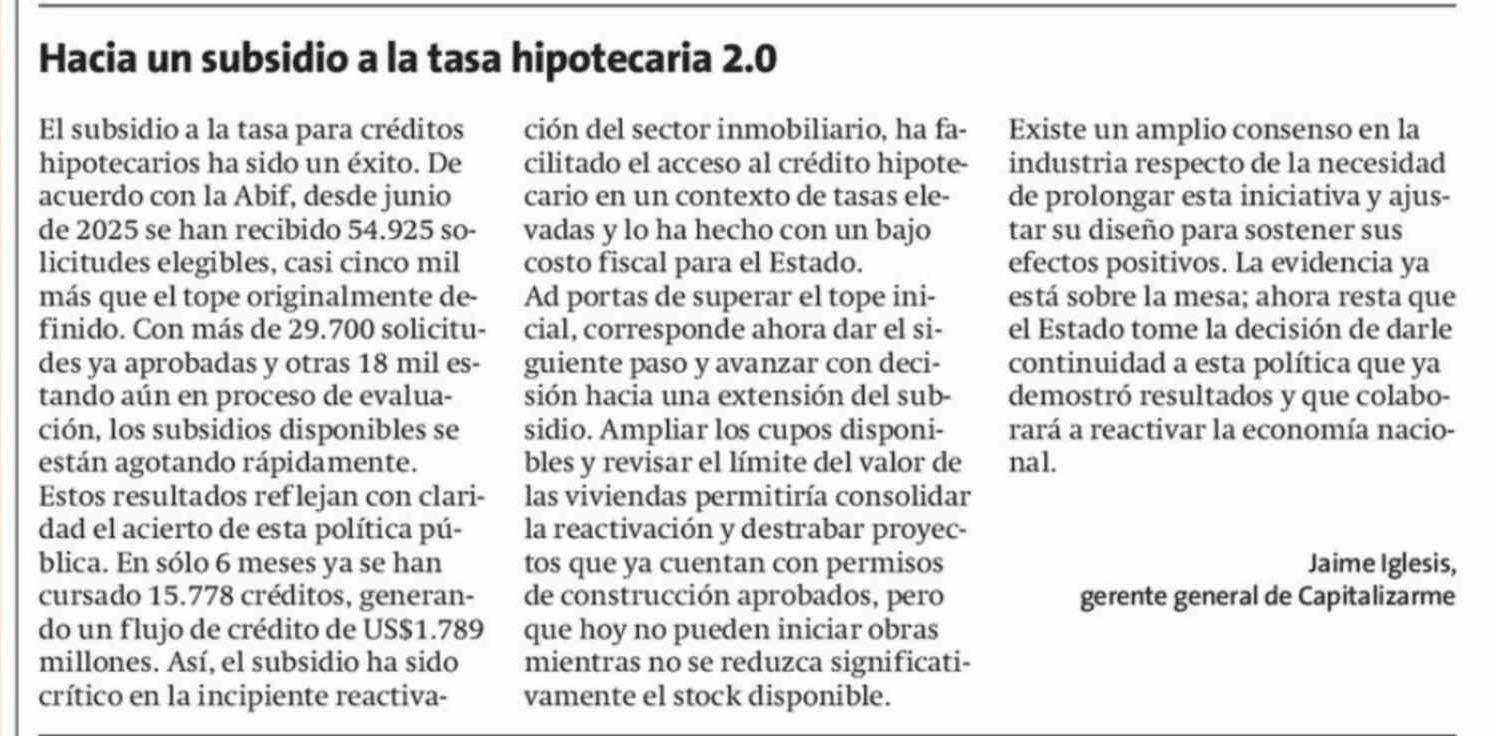 Título: Cartas: Hacia un subsidio a la tasa hipotecaria 2.0