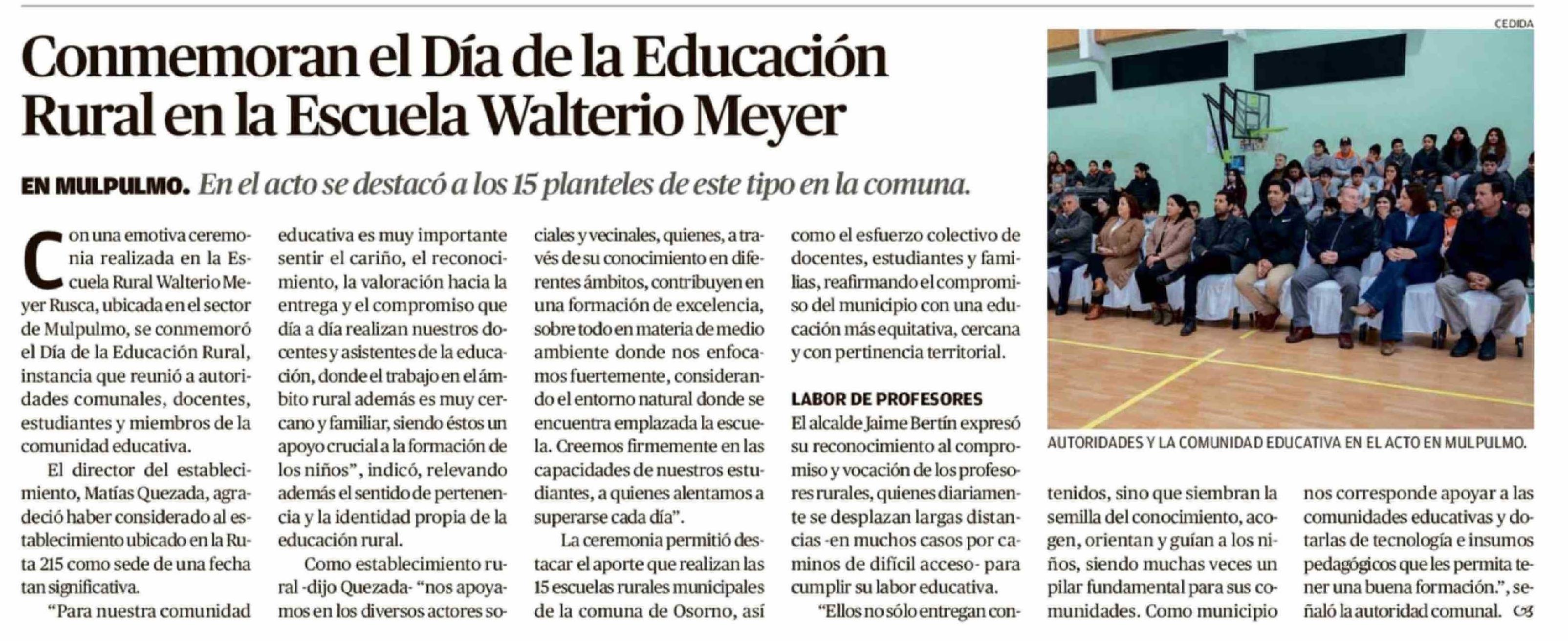 Conmemoran el Día de la Educación Rural en la Escuela Walterio Meyer 08-04-2026 El Austral de Osorno |