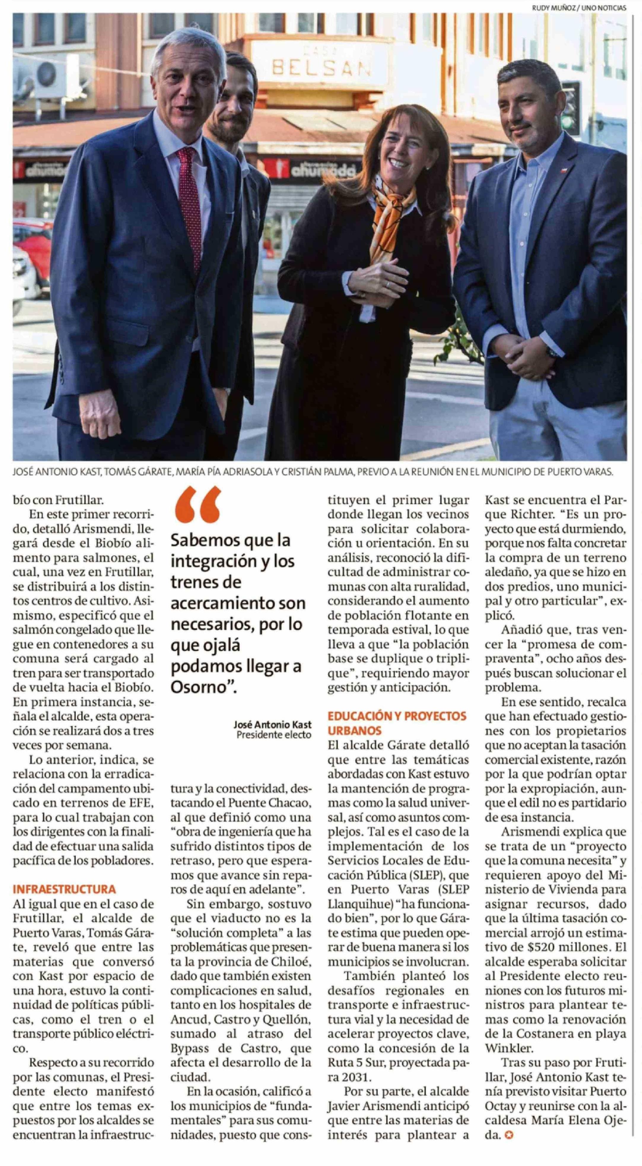 bío con Frutillar. En este primer recorrido, detalló Arismendi, llegará desde el Biobío alimento para salmones, el cual, una vez en Frutillar, se distribuirá a los distintos centros de cultivo. Asimismo, especificó que el salmón congelado que llegue en contenedores a su comuna será cargado al tren p