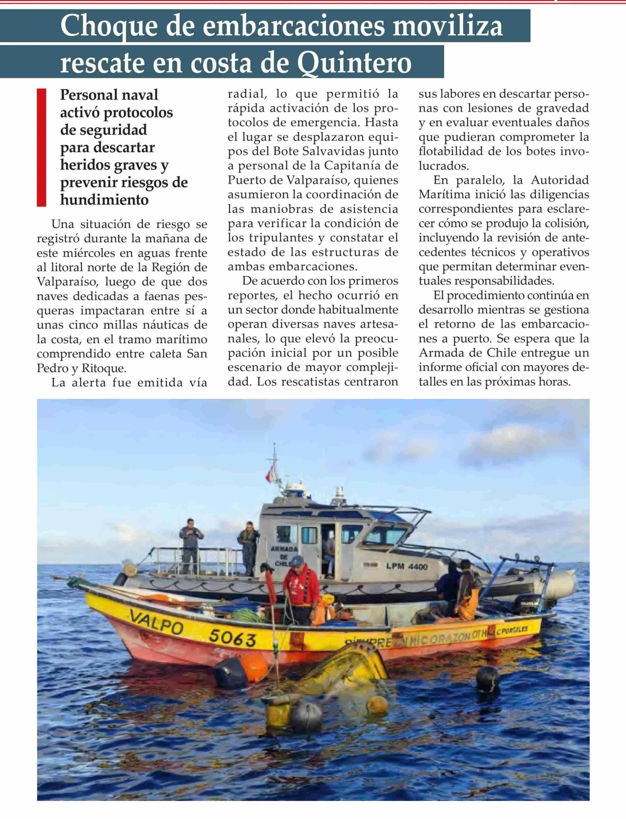 ___ Choque de embarcaciones moviliza rescate en costa de Quintero 04-02-2026 El Observador Vespertino |