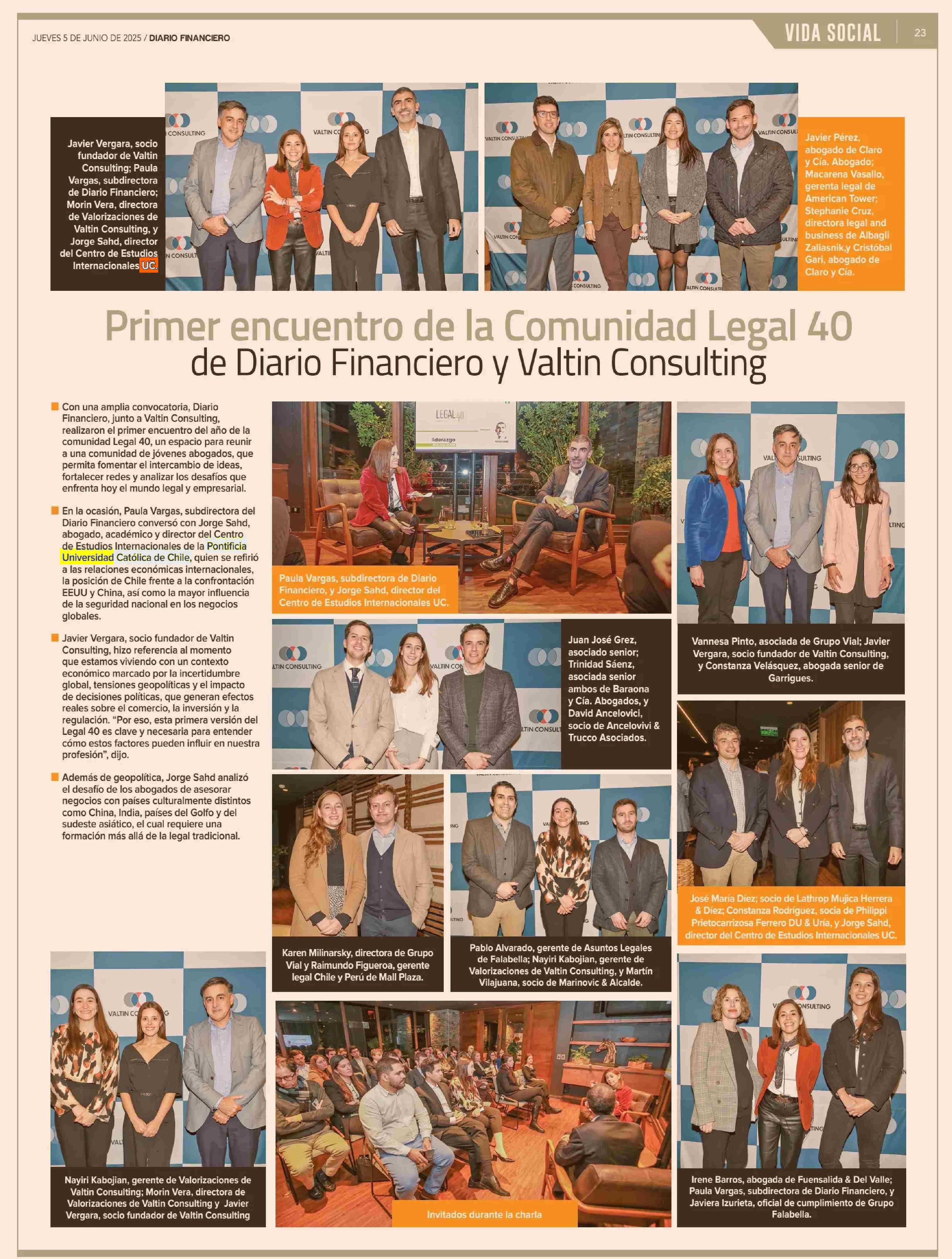 Primer encuentro de la Comunidad Legal 40 de Diario Financiero y Valtin Consulting 05-06-2025 Diario Financiero |