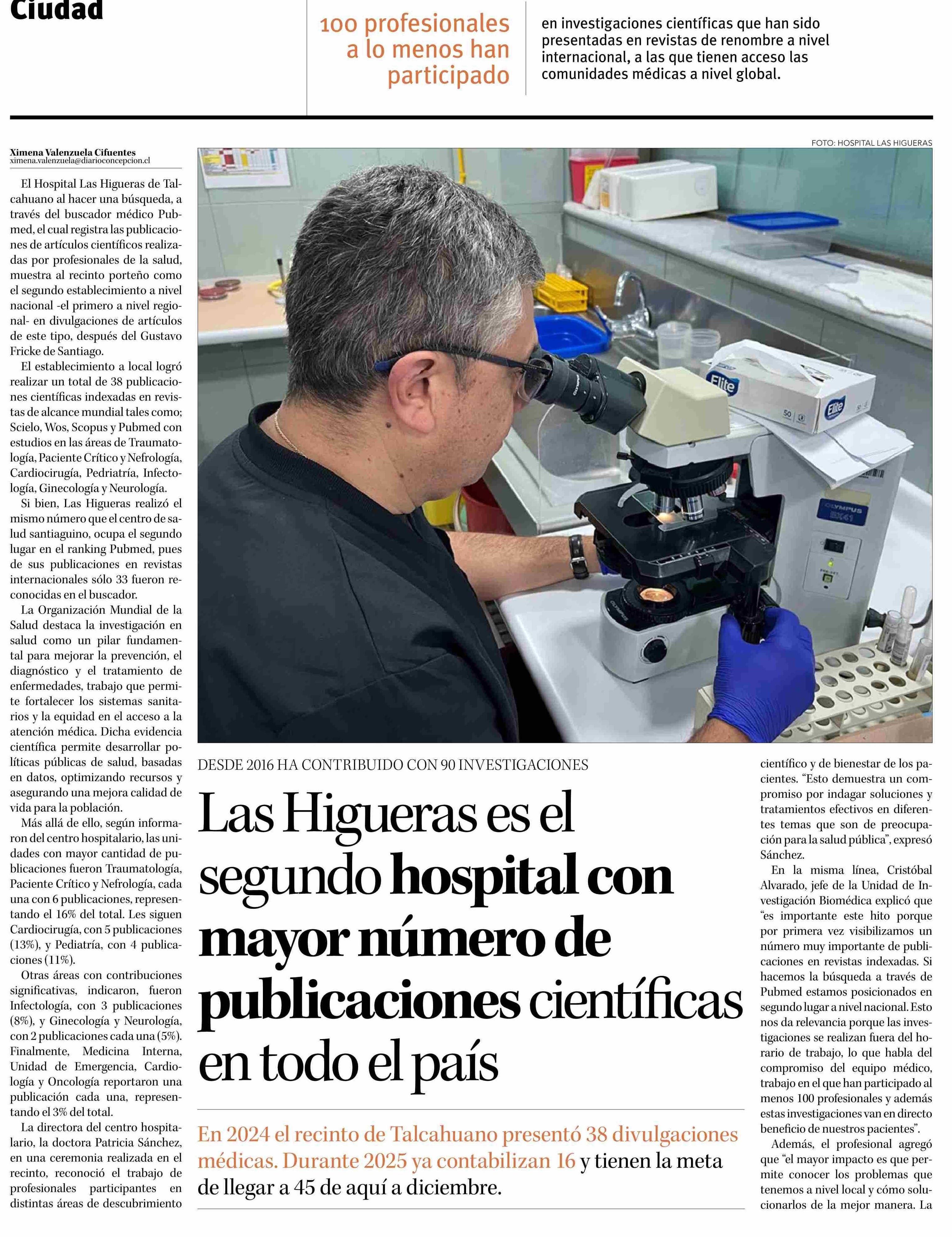 Las Higueras es el segundo hospital con mayor número de publicaciones científicas en todo el país 07-05-2025 Diario Concepción |
