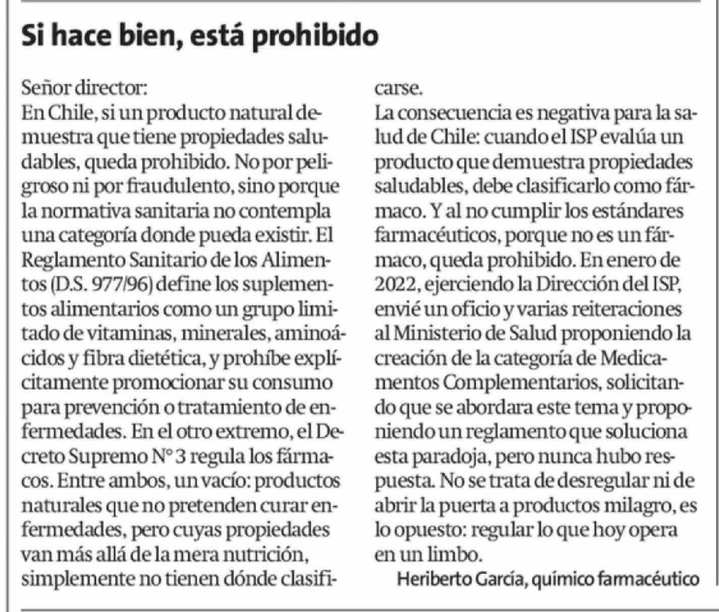 Columnas de Opinión: Si hace bien, está prohibido 24-03-2026 La Estrella de Antofagasta |