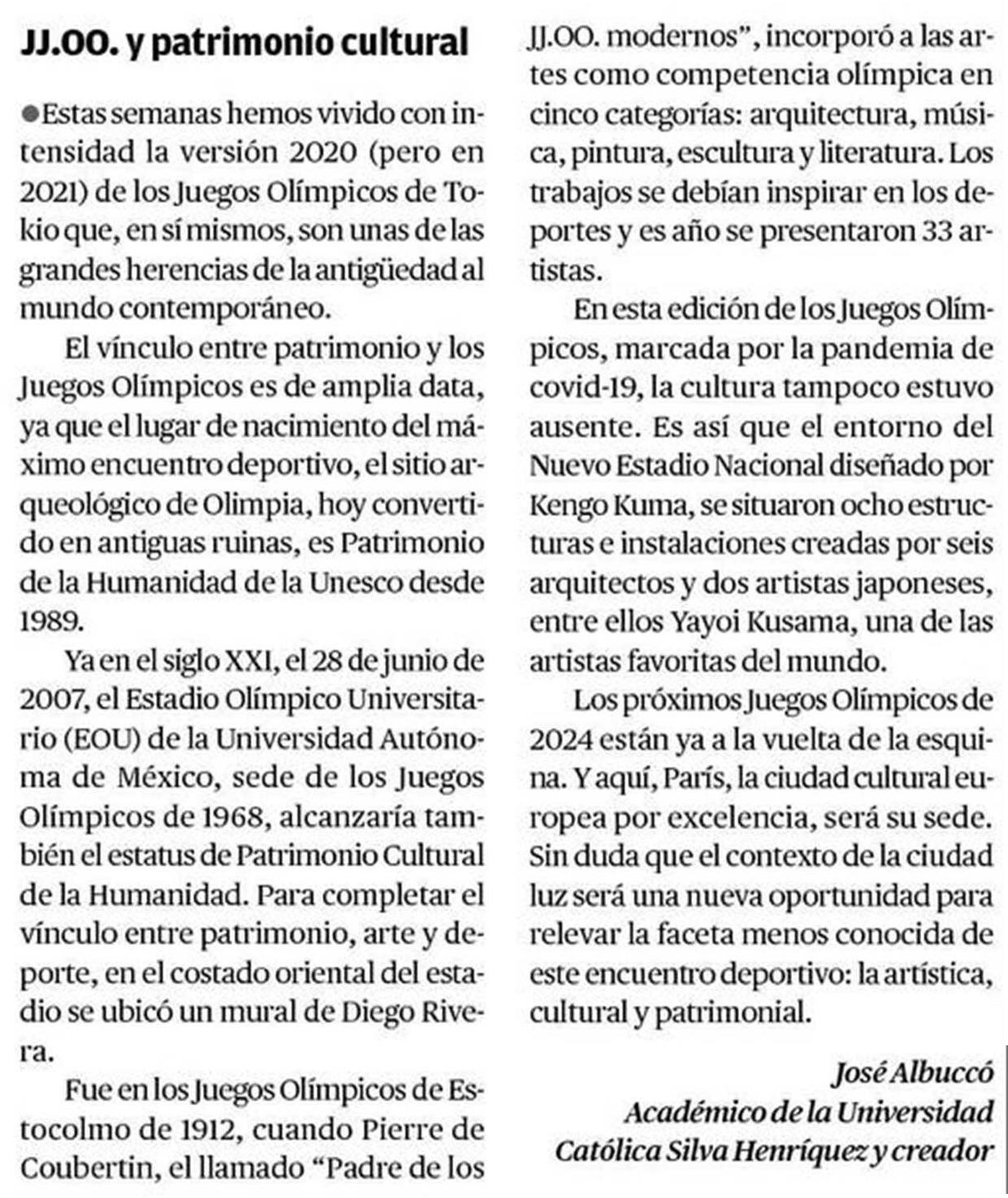 JJ.OO. y patrimonio cultural 10-08-2021 El Mercurio de Antofagasta |