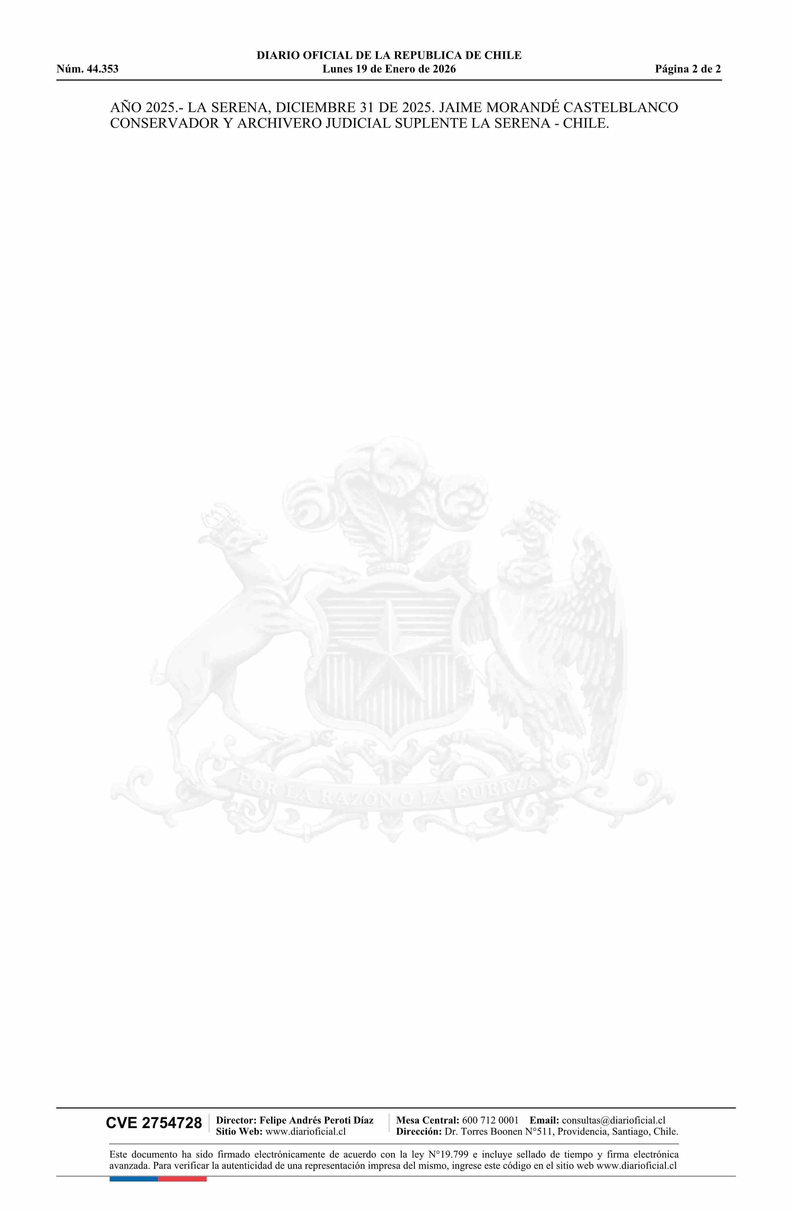 | Fuente: | DIARIO OFICIAL CHILE - BOLETÍN OFICIAL DE MINERÍA (DIARIO OFICIAL CHILE – BOM – MANIFESTACIONES MIN) | Página(s): | 39-40 |