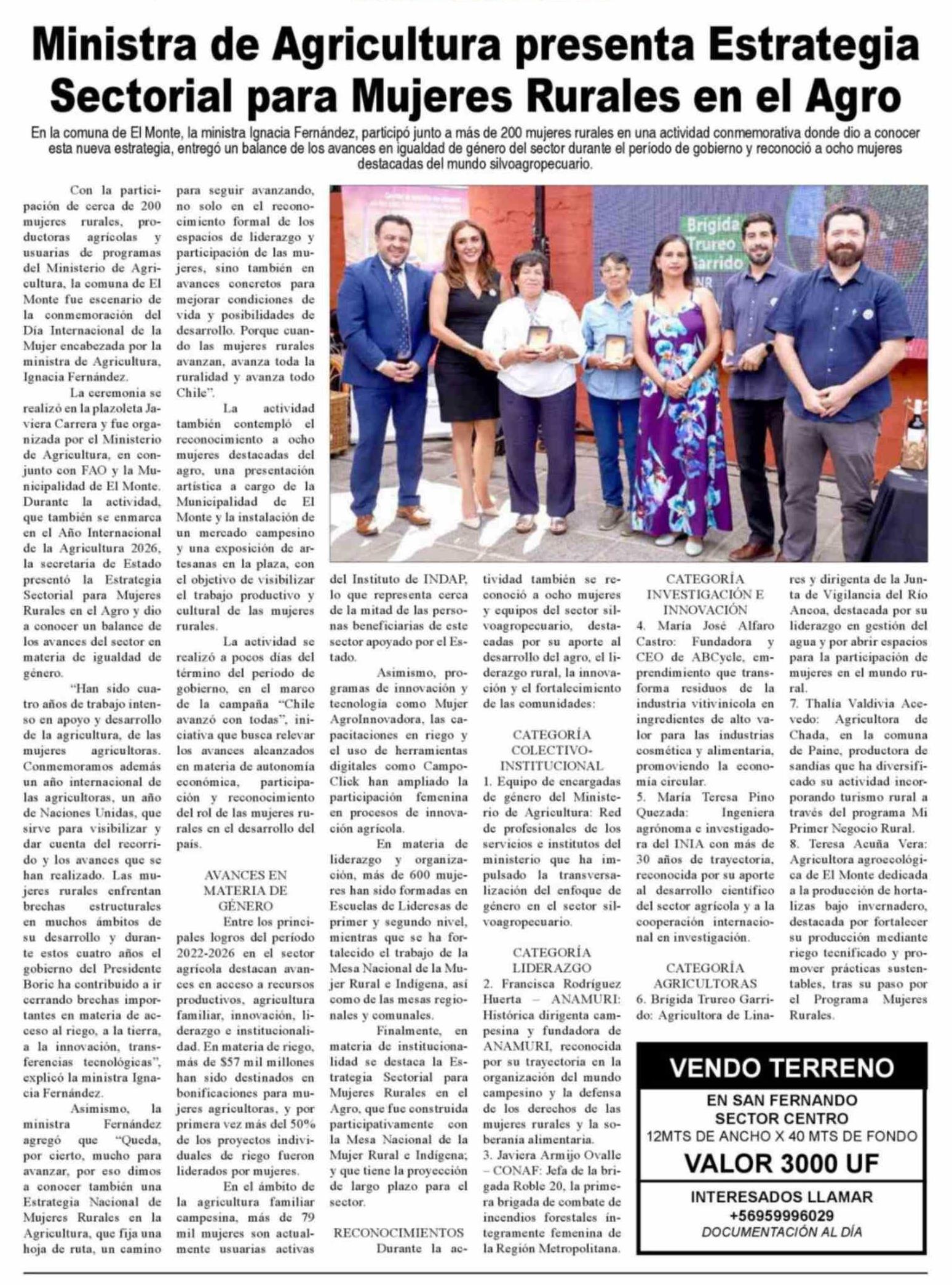 Título: Ministra de Agricultura presenta Estrategia Sectorial para Mujeres Rurales en el Agro