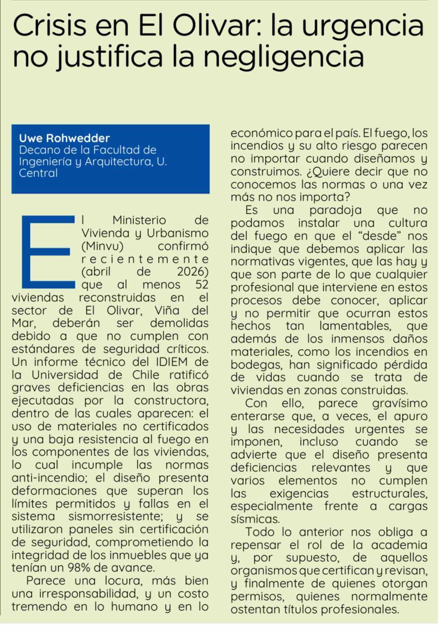 | Título: | Columnas de Opinión: Crisis en El Olivar: la urgencia no justifica la negligencia |