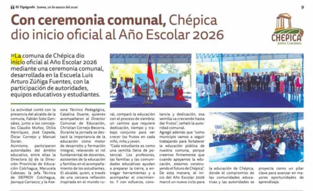Título: Con ceremonia comunal, Chépica dio inicio oficial al Año Escolar 2026
