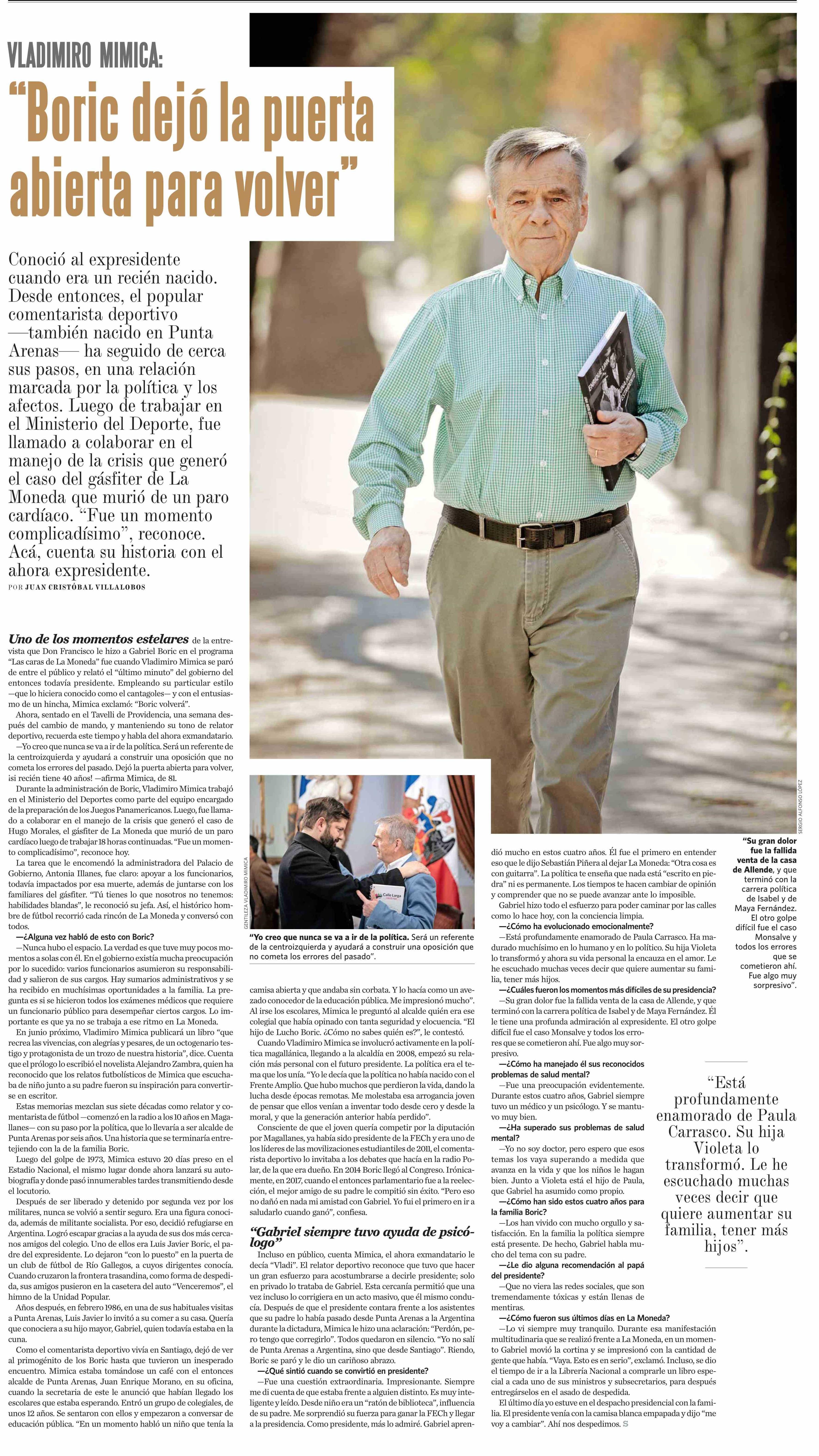 “Boric dejó la puerta abierta para volver” 21-03-2026 El Mercurio |