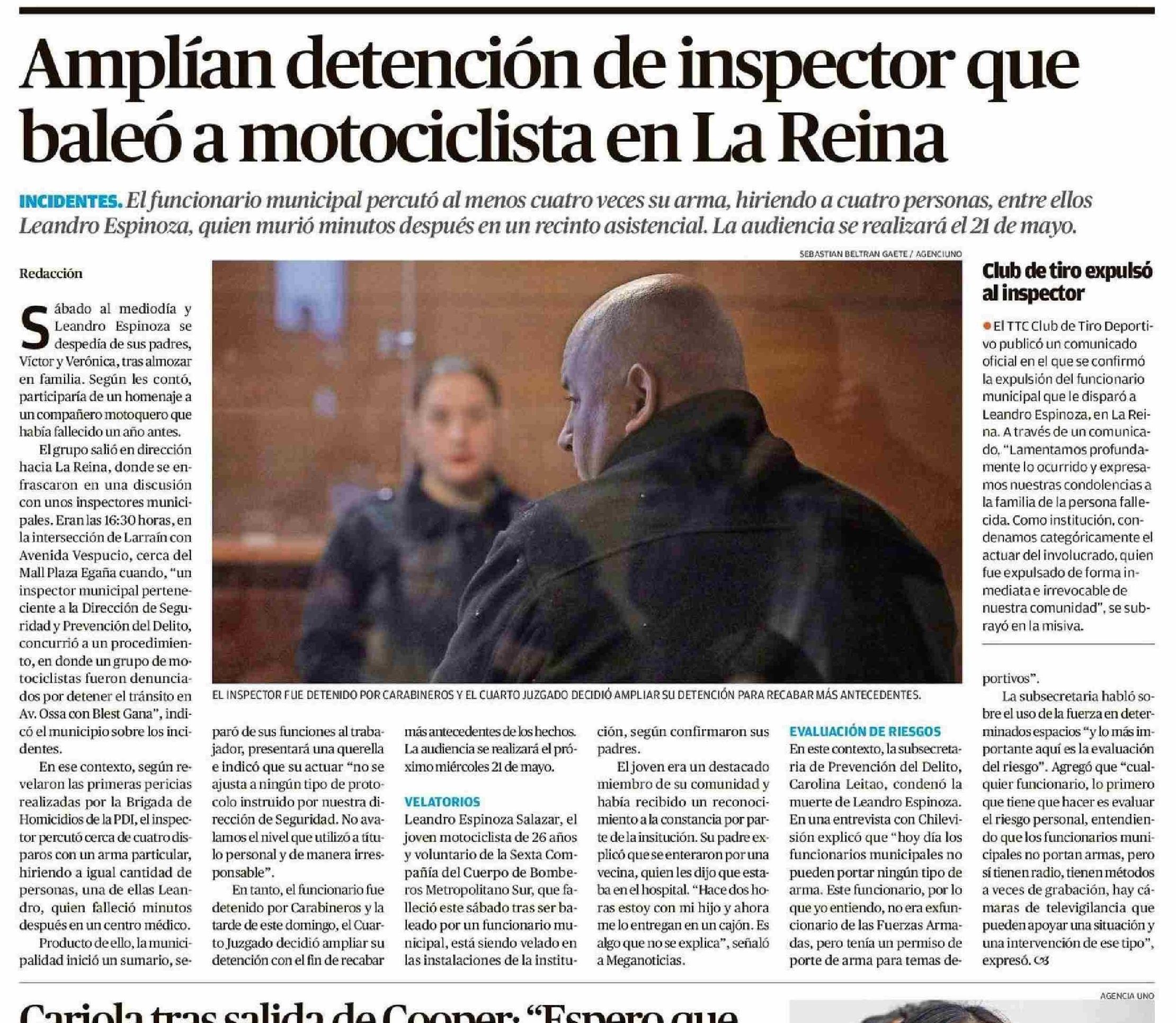 Título: Amplían detención de inspector que baleó a motociclista en La Reina