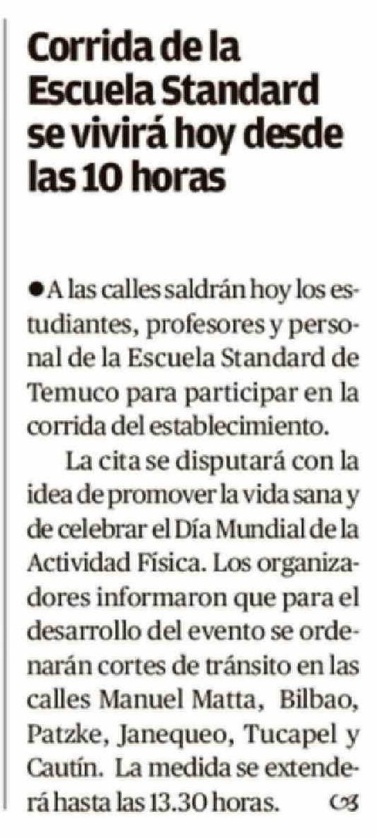 Corrida de la Escuela Standard se vivirá hoy desde las 10 horas 09-04-2026 El Austral de la Araucanía |