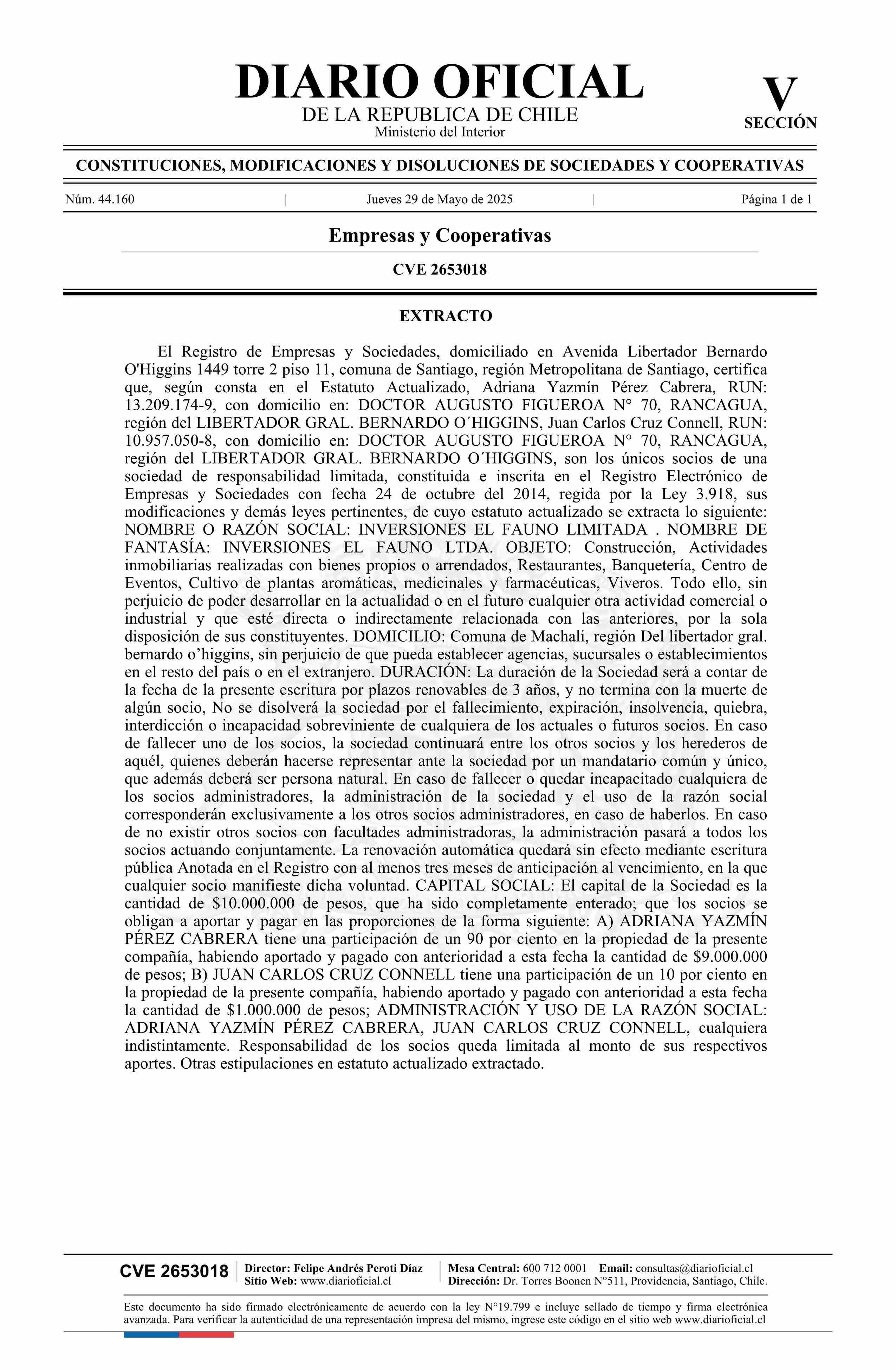 INVERSIONES EL FAUNO LIMITADA 29-05-2025 Diario Oficial Edición Electrónica |