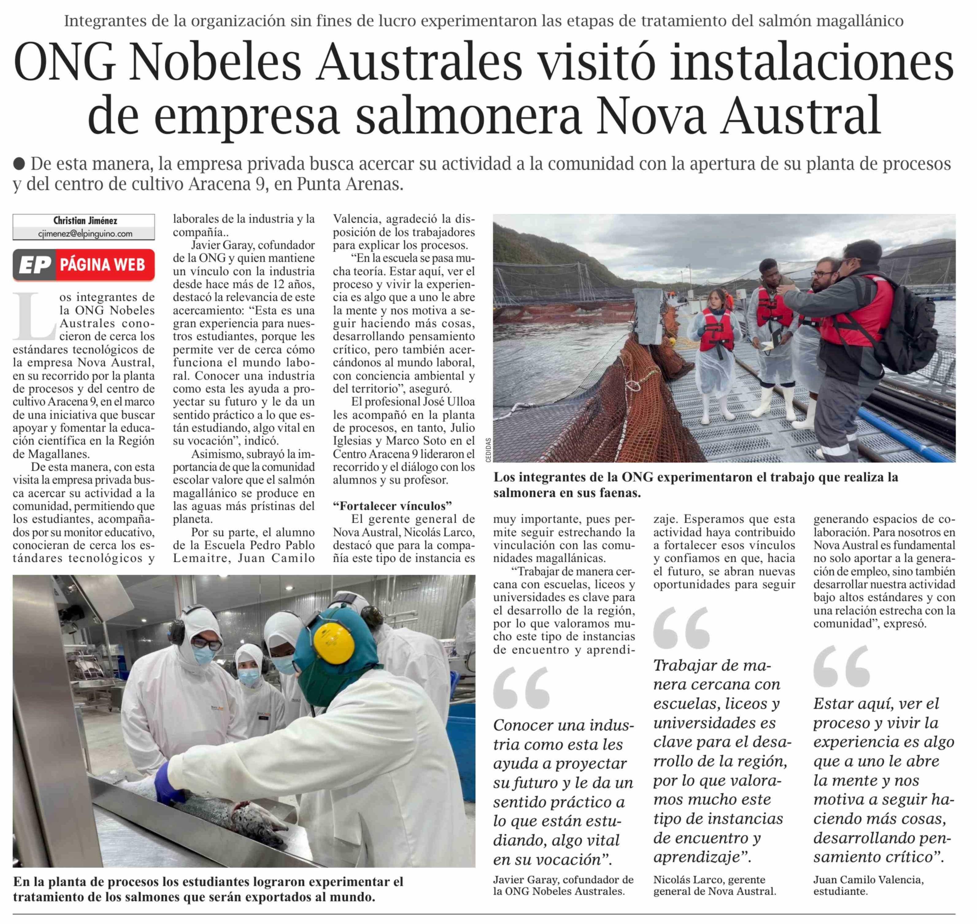ONG Nobeles Australes visitó instalaciones de empresa salmonera Nova Austral 12-03-2026 El Pingüino |