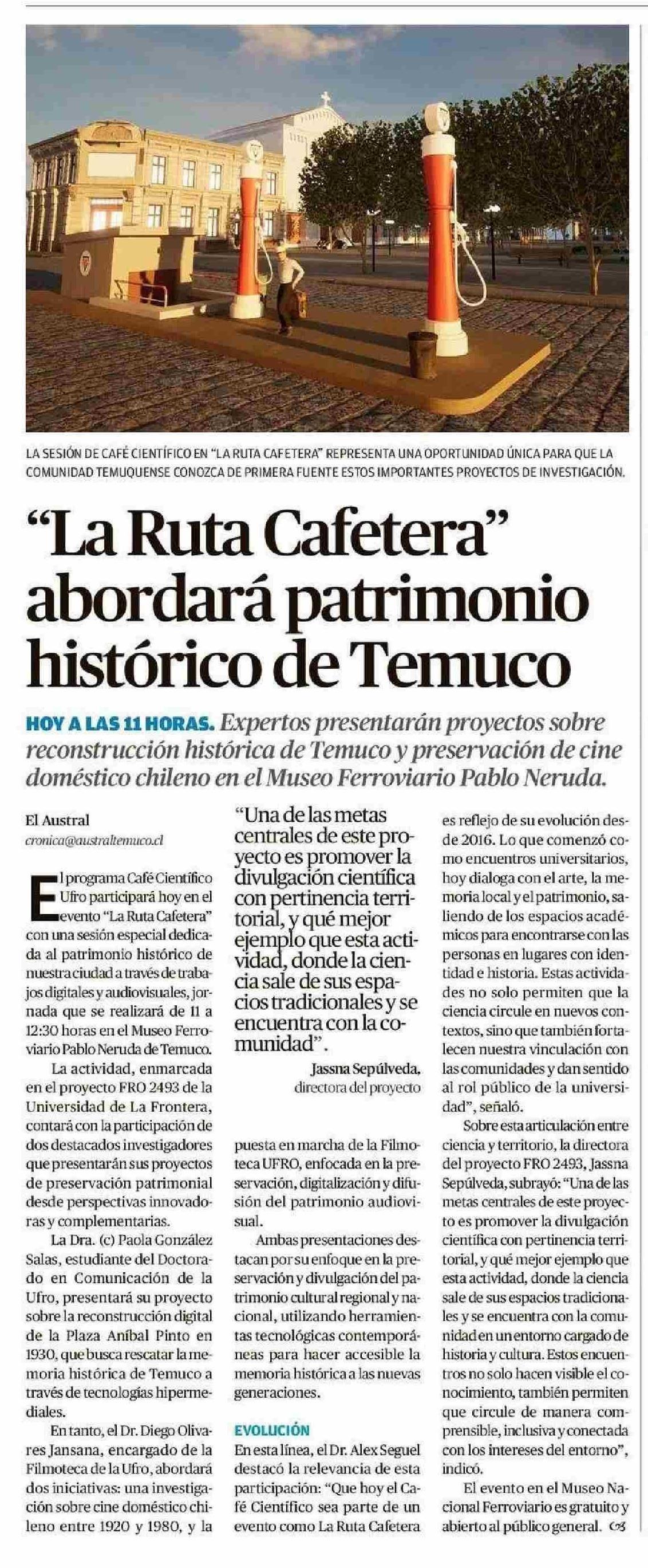 "La Ruta Cafetera" abordará patrimonio histórico de Temuco 07-06-2025 El Austral de la Araucanía |