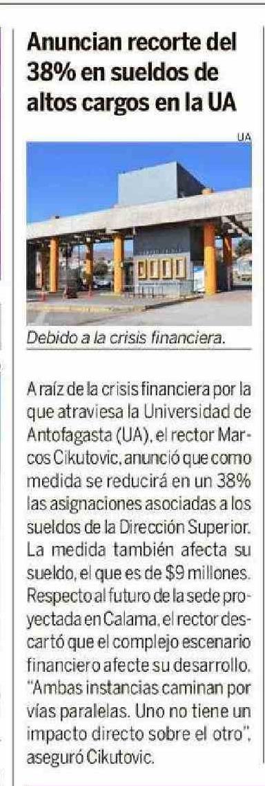 Anuncian recorte del 38% en sueldos de altos cargos en la UA 11-06-2025 Hoy x Hoy Antofagasta |