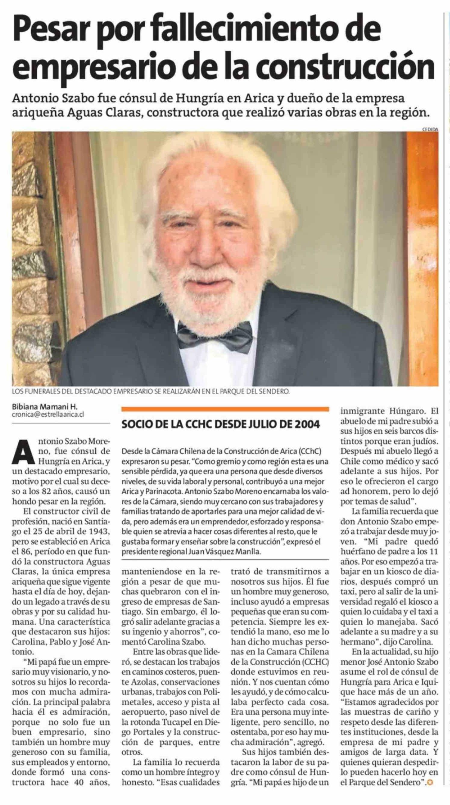 Título: Pesar por fallecimiento de empresario de la construcción