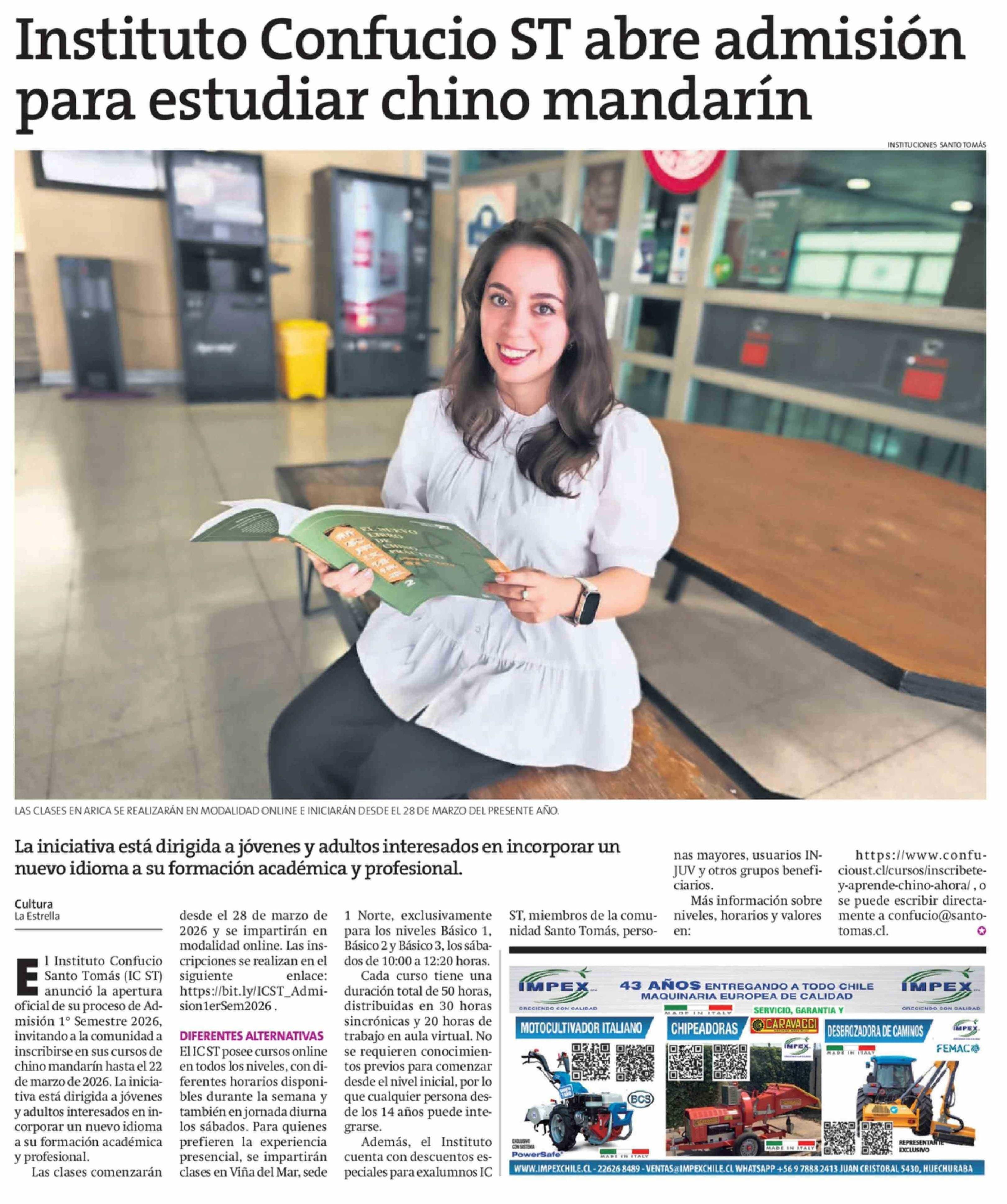 Instituto Confucio ST abre admisión para estudiar chino mandarín 22-03-2026 La Estrella de Arica |