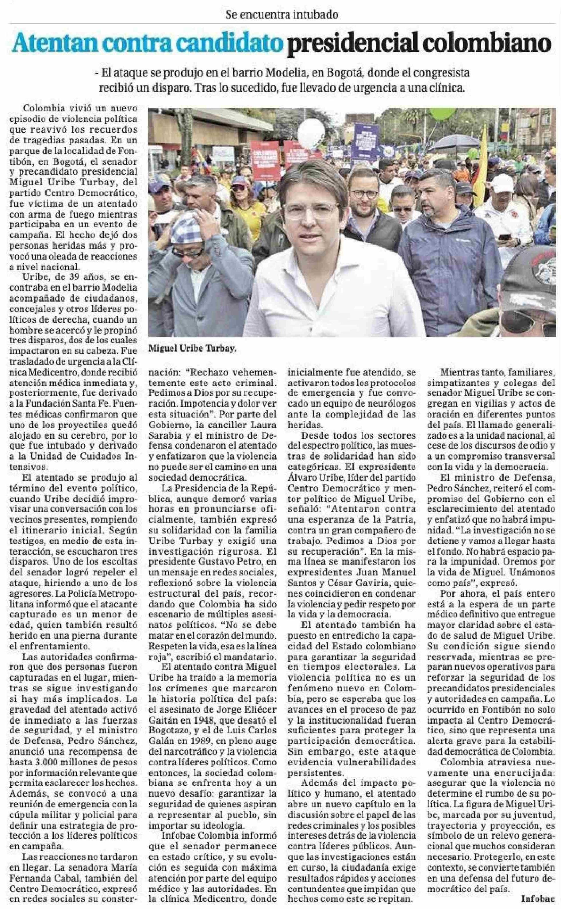 Atentan contra candidato presidencial colombiano 08-06-2025 El Magallanes |
