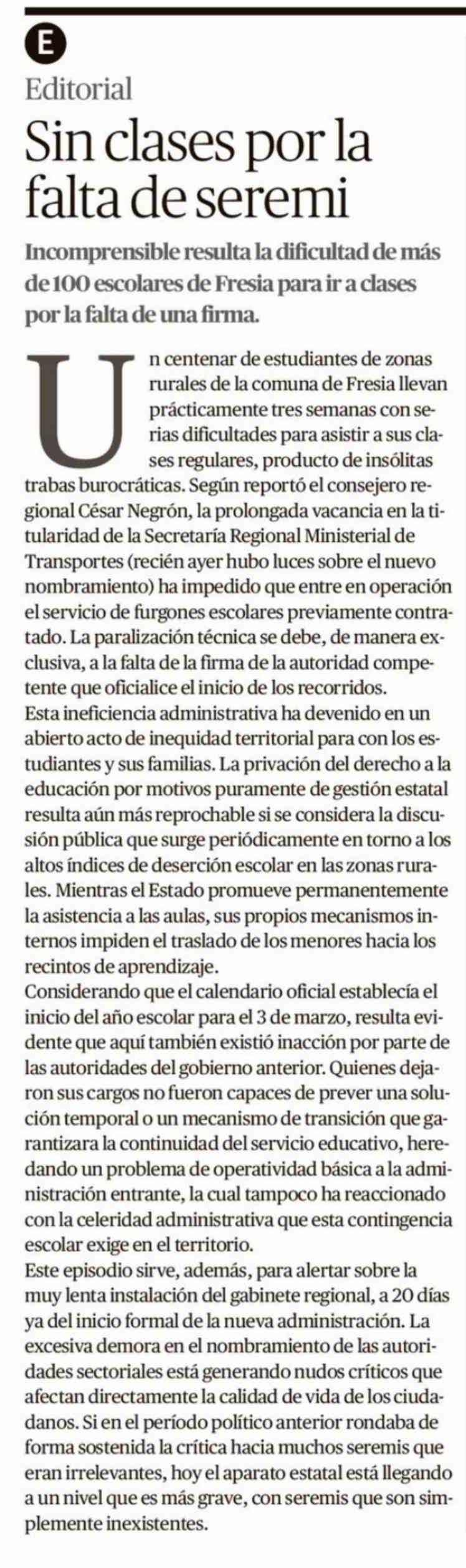 Fecha: 31-03-2026 Sector: Editorial Región: Región de Los Lagos