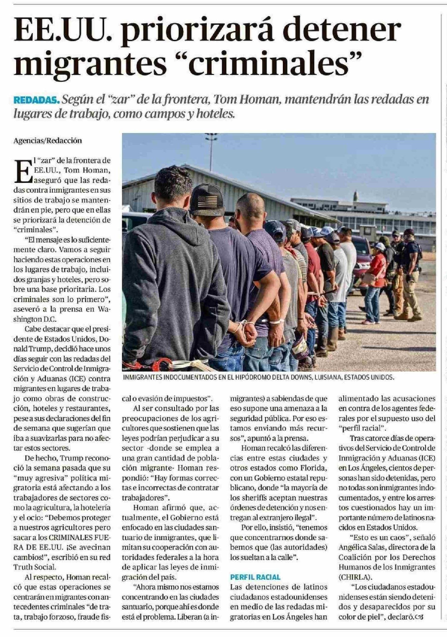 EE.UU. priorizará detener migrantes "criminales" 20-06-2025 Crónica de Chillán |