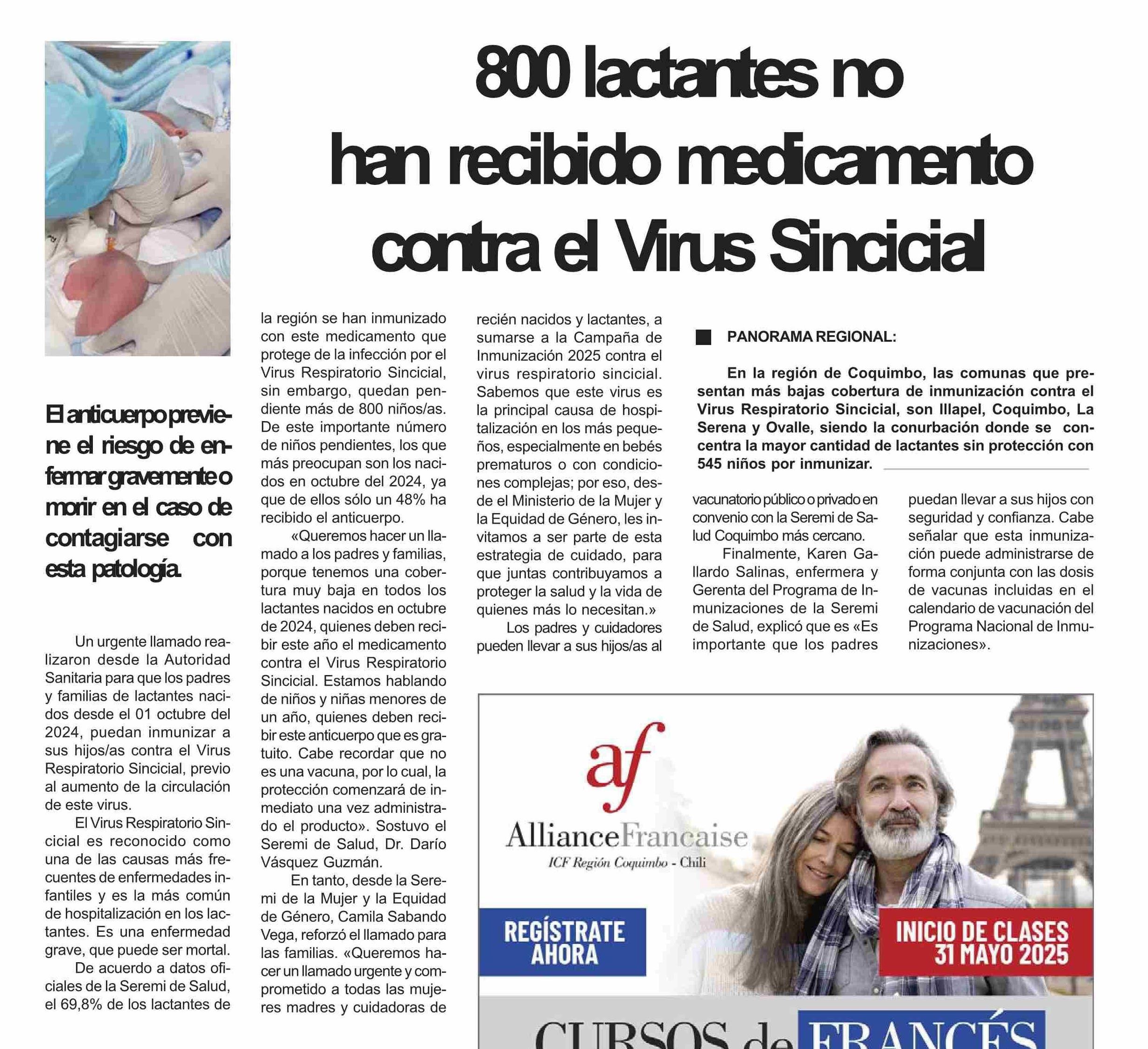 800 lactantes no han recibido medicamento contra el Virus Sincicial 06-05-2025 Diario la Región |