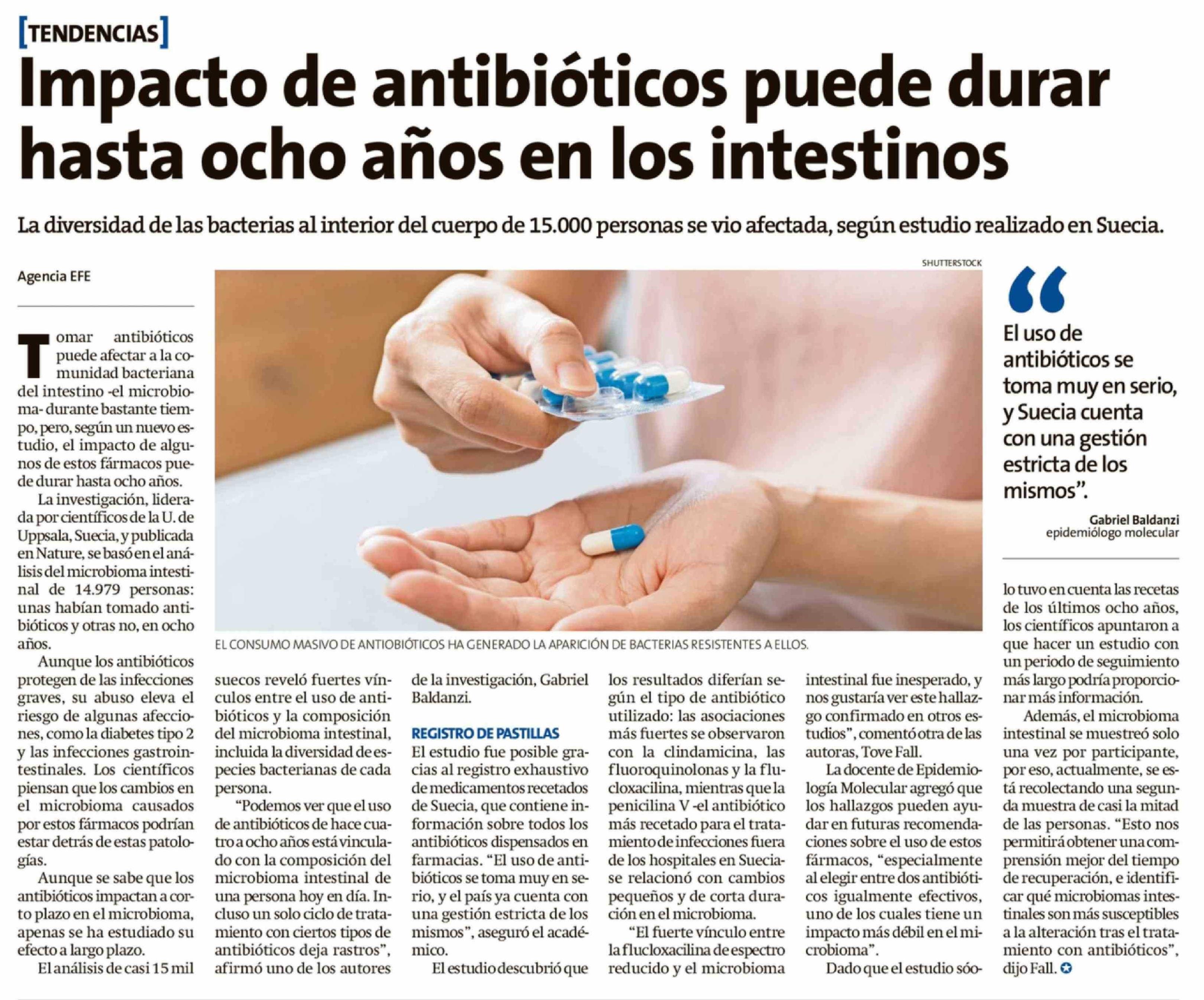 Título: Impacto de antibióticos puede durar hasta ocho años en los intestinos