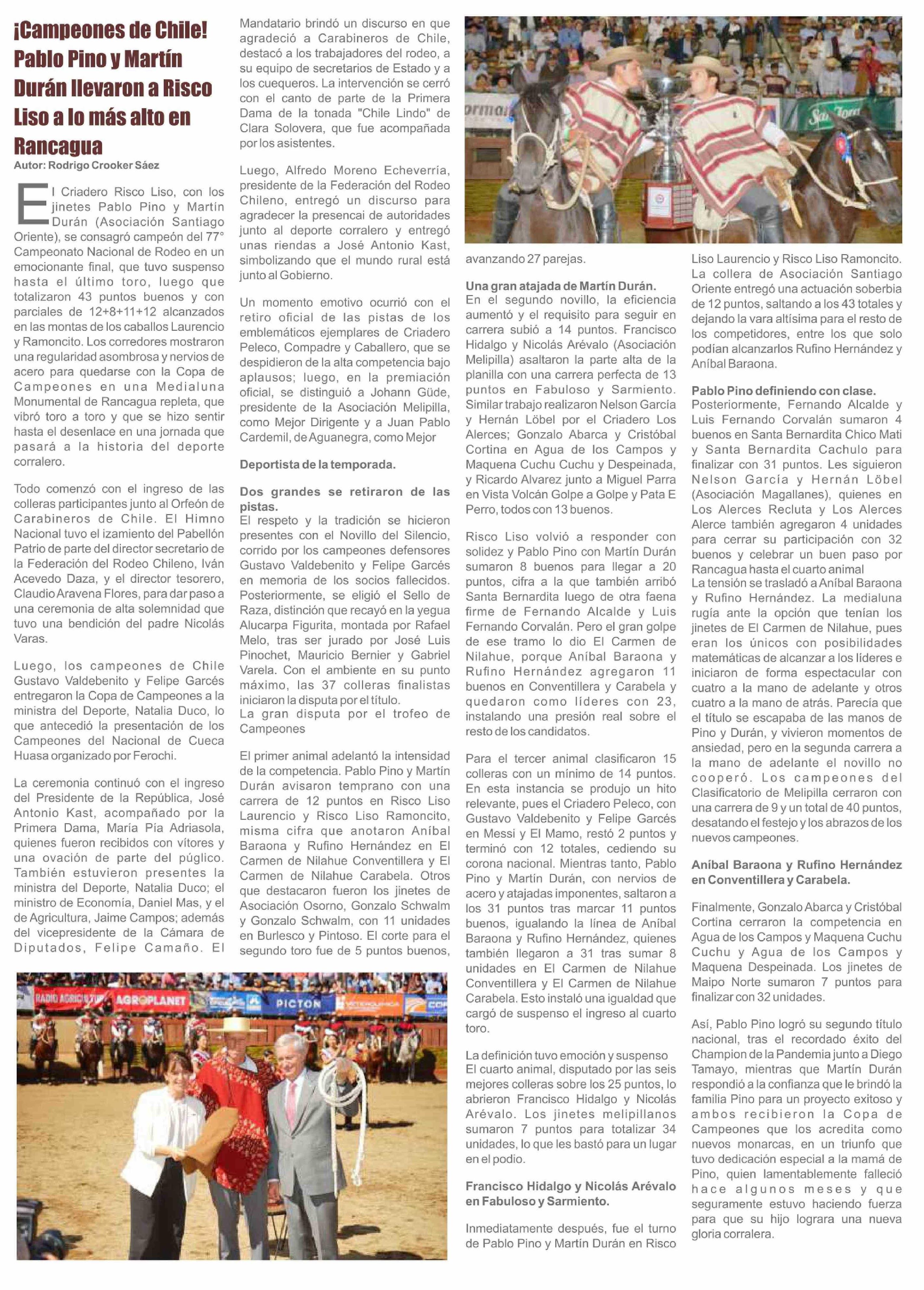 Título: ¡Campeones de Chile! Pablo Pino y Martín Durán llevaron a Risco Liso a lo más alto en
